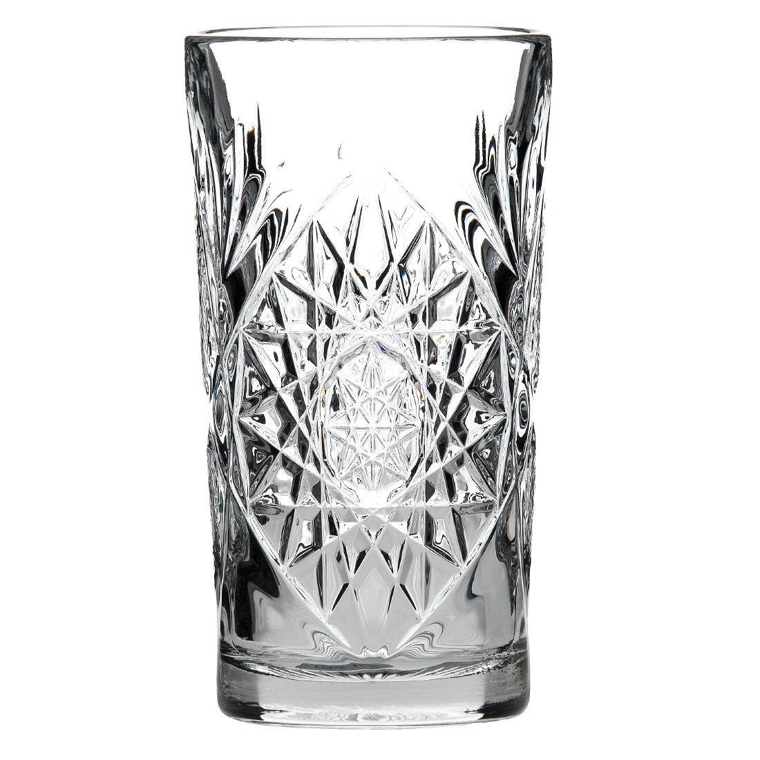 Make your bar or restaurant's cocktail service stand out with these 470ml cooler glasses from the Onis Hobstar range. With an authentic retro/vintage design and cut-glass finish, they make a striking addition to any table, instantly enhancing its visual appeal. They're also dishwasher safe, allowing for a quick turnaround of fresh glassware during busy service periods.