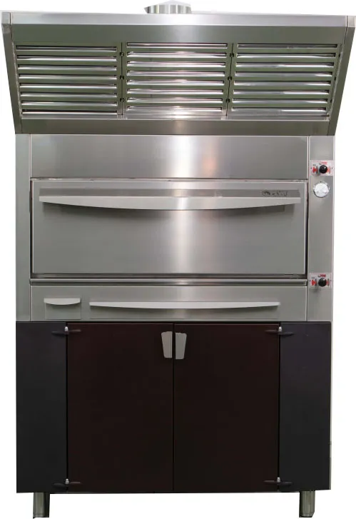 This heavy-duty Peva charcoal-burning oven allows you to create the authentic flavor of charcoal-cooked food. It can be used as a grill for cooking steaks or as an oven using a variety of shelf height settings, making it ideal for restaurants, pubs, hotels, outside kitchens, or mobile catering. The heavy-duty construction will provide you with years of service.