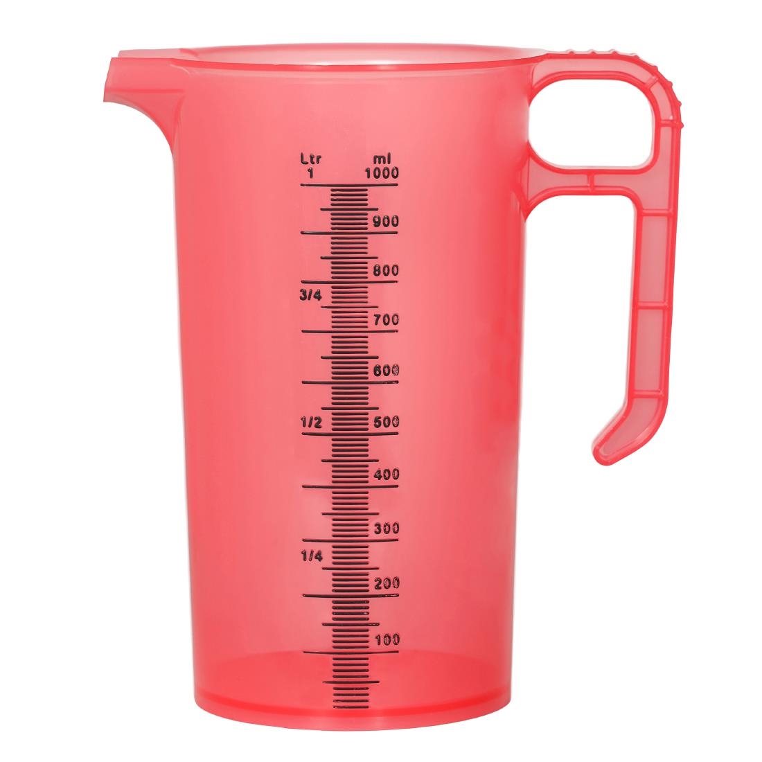 Ensure consistent and accurate measurements with the 1Ltr measuring jug from Pro-Measures. With its ergonomic handle and drip-free spout, it's easy to grab and pours with less mess and less fuss. On the side, the jug has accurate measurements in litres and millilitres, so you'll always know exactly how much fluid is inside. As the measurements are hot stamped, they will permanently remain visible - even after many months of everyday professional use. Additionally, the red colour makes it the perfect addition to your colour-coded system.