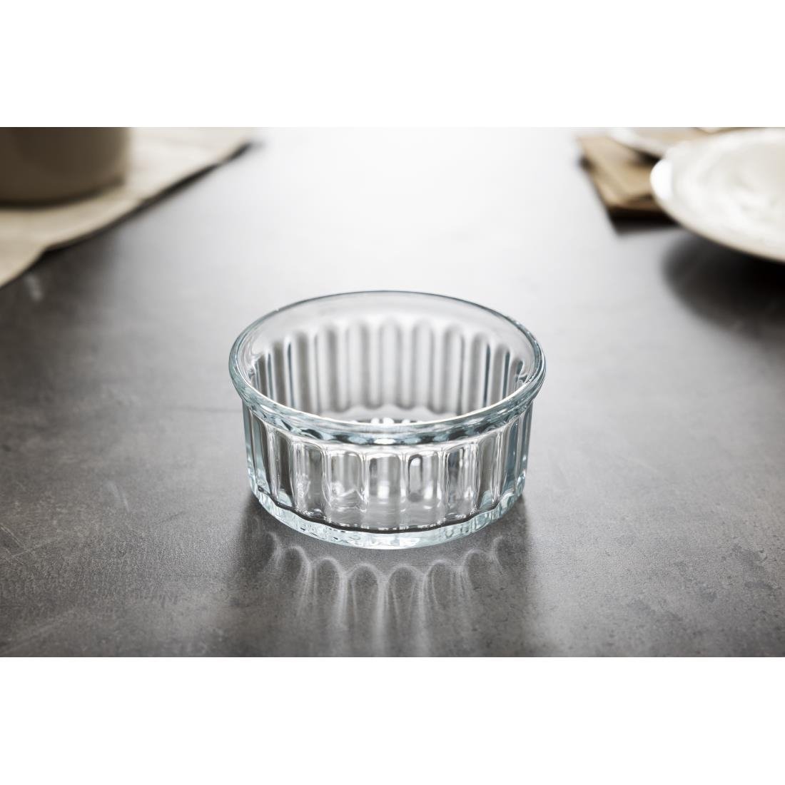 The durable glass ramekin is ideal for oven-to-table service. It is safe for use in the oven, microwave, and dishwasher, making it a versatile and convenient addition to your kitchenware.