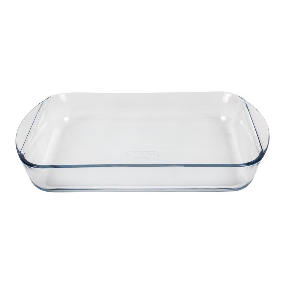 Attractive glass roasting trays with an extremely high thermal shock resistance are perfect for oven-to-table service. These roasters are also great for food storage. They are oven, microwave, and dishwasher safe.