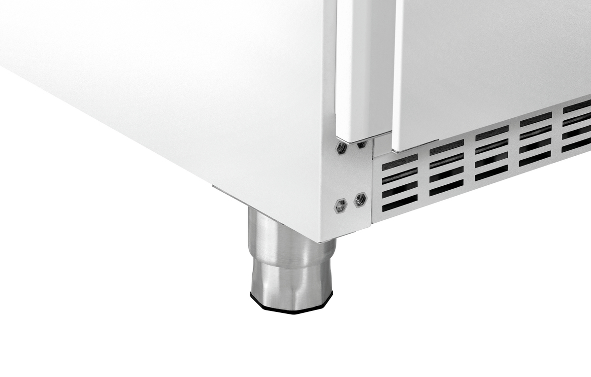 This lockable refrigerator, featuring a slightly textured surface, is a distinctive addition to any professional kitchen. It includes five height-adjustable grills, allowing the interior to be customized to meet your specific requirements. The perfect temperature can be set easily and intuitively in increments of 0.1°C using the display.