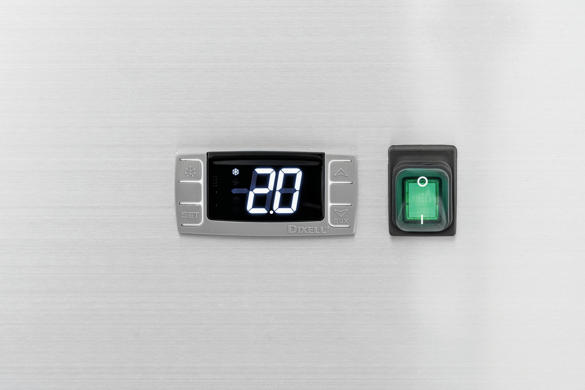 Need a little more space? With its 2/1 GN intermediate shelves, this double-doored stainless steel refrigerator offers particularly generous space for storing refrigerated goods. The powerful forced-air cooling system ensures an even and constant interior temperature despite the size of the appliance.