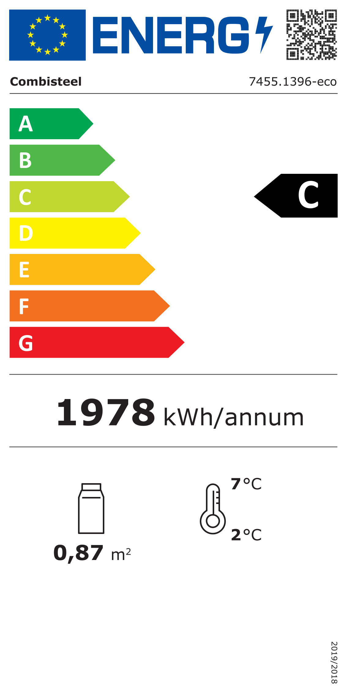 Dimensions: 1120x595x2100 mm (LxDxH) – Power consumption: 0,45 kW – Capacity: 780 liters – Temperature: +2/+10ºC – Weight: 125 kg.