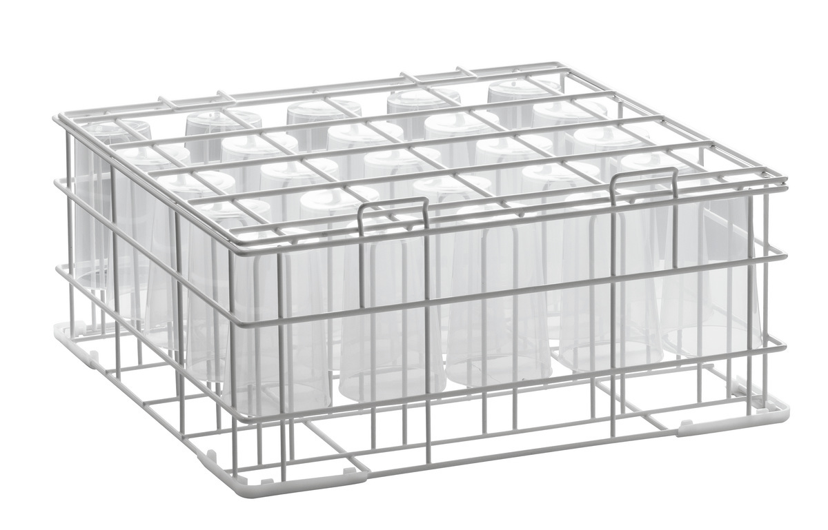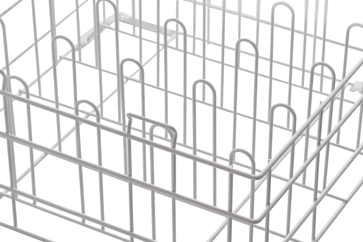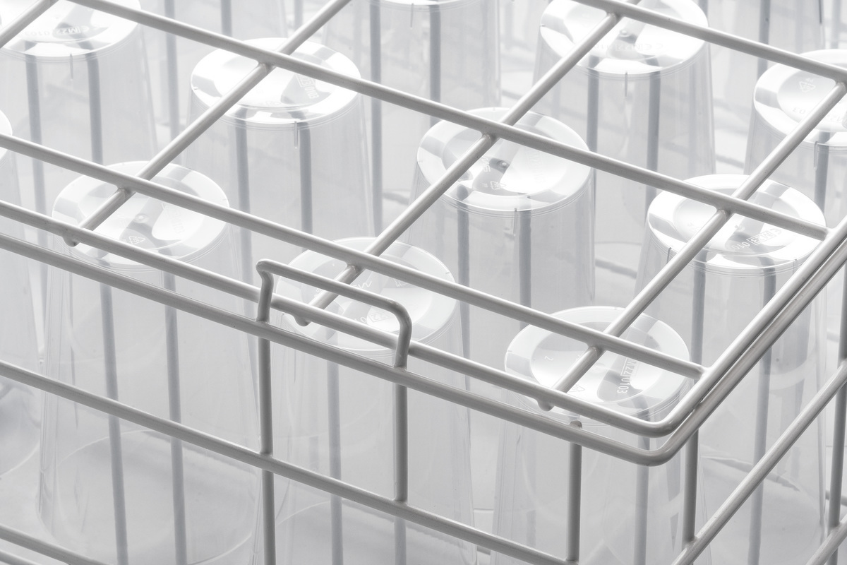 This reusable cup basket enables cups and glasses to be washed in a dishwasher quickly and easily without shifting. The inserted cups are securely held in place by the closed lid.