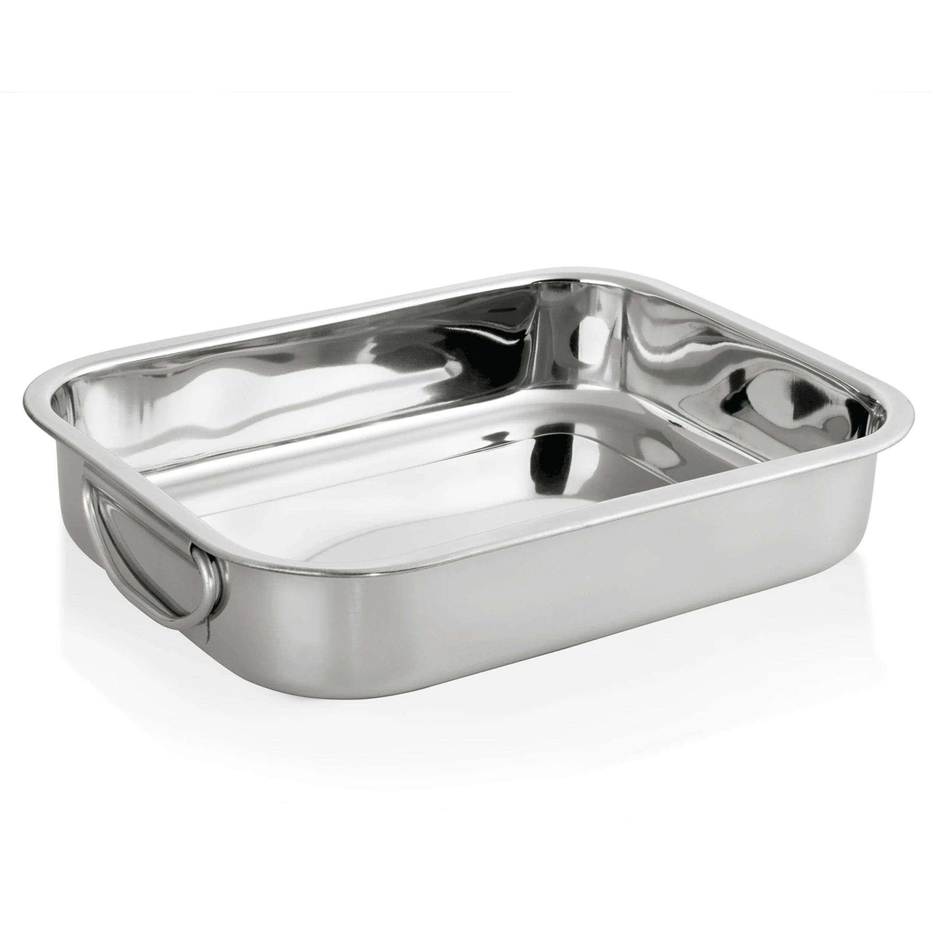 This product features drop handles and a rolled rim, designed without a sandwich base. It is important to note that it is not suitable for use on hobs.