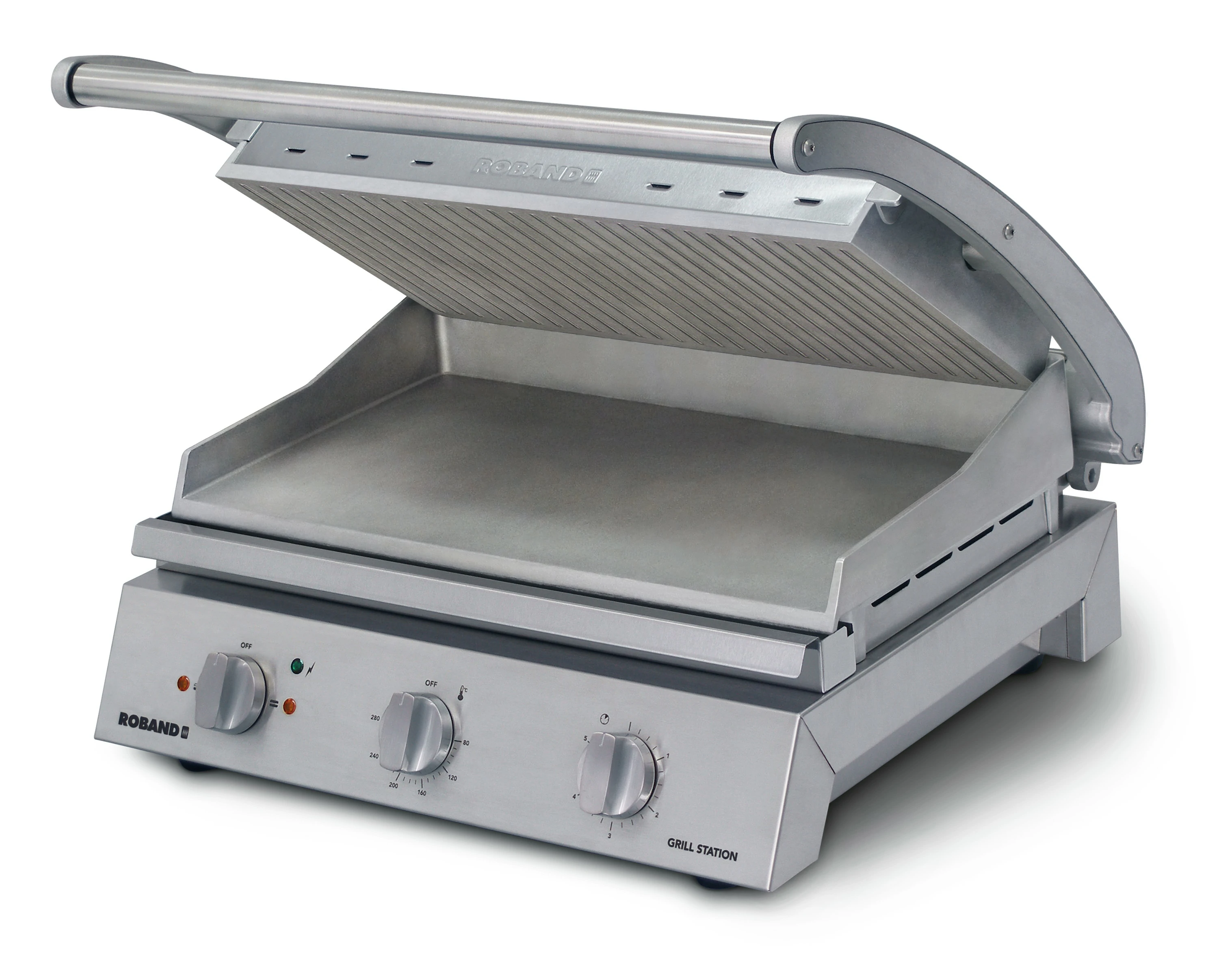The high-speed, 8-slice grill station features a ribbed top plate, designed to provide efficient and even grilling. This appliance is perfect for quickly preparing multiple servings, making it ideal for both home and commercial use. Its robust construction ensures durability, while the ribbed top plate adds those classic grill marks to your food, enhancing both the appearance and flavor. Whether you're grilling sandwiches, meats, or vegetables, this grill station delivers consistent results with ease.