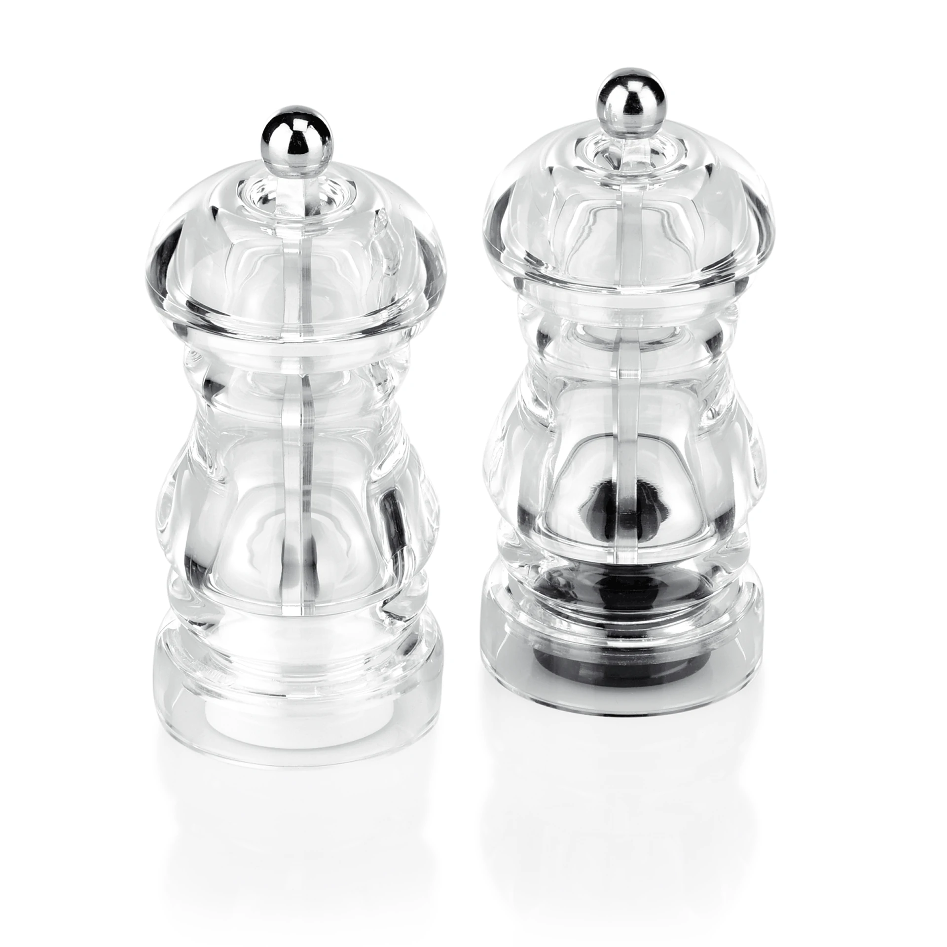 The salt mill features a durable ceramic grinder, designed to efficiently grind salt to your desired consistency. Its robust construction ensures longevity and consistent performance. The pepper mill is equipped with a high-quality stainless steel grinder, providing precise and effortless grinding of peppercorns. Both mills are crafted with attention to detail, offering a sleek and modern design that complements any kitchen decor. These mills are not only functional but also add an elegant touch to your dining experience.