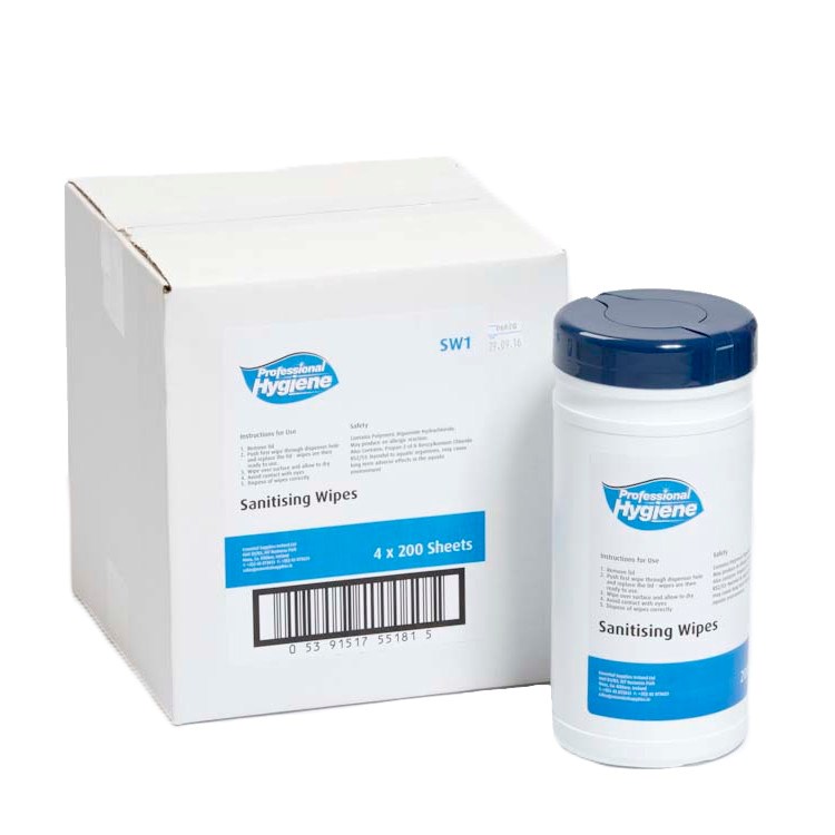 Sanitising cleaning Wipes State : Wet, non-woven wipes Odour - Characteristic odour Insoluble in water Case quantity - 4 Tubs of 200 sheets