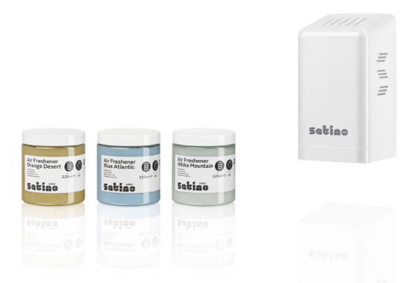 The Satino air refresher for a feelgood experience in washrooms of up to 20 m³. No battery power or electricity consumption. Simply mount or stick, position the opened gel fragrance and breathe in. AR1-compatible