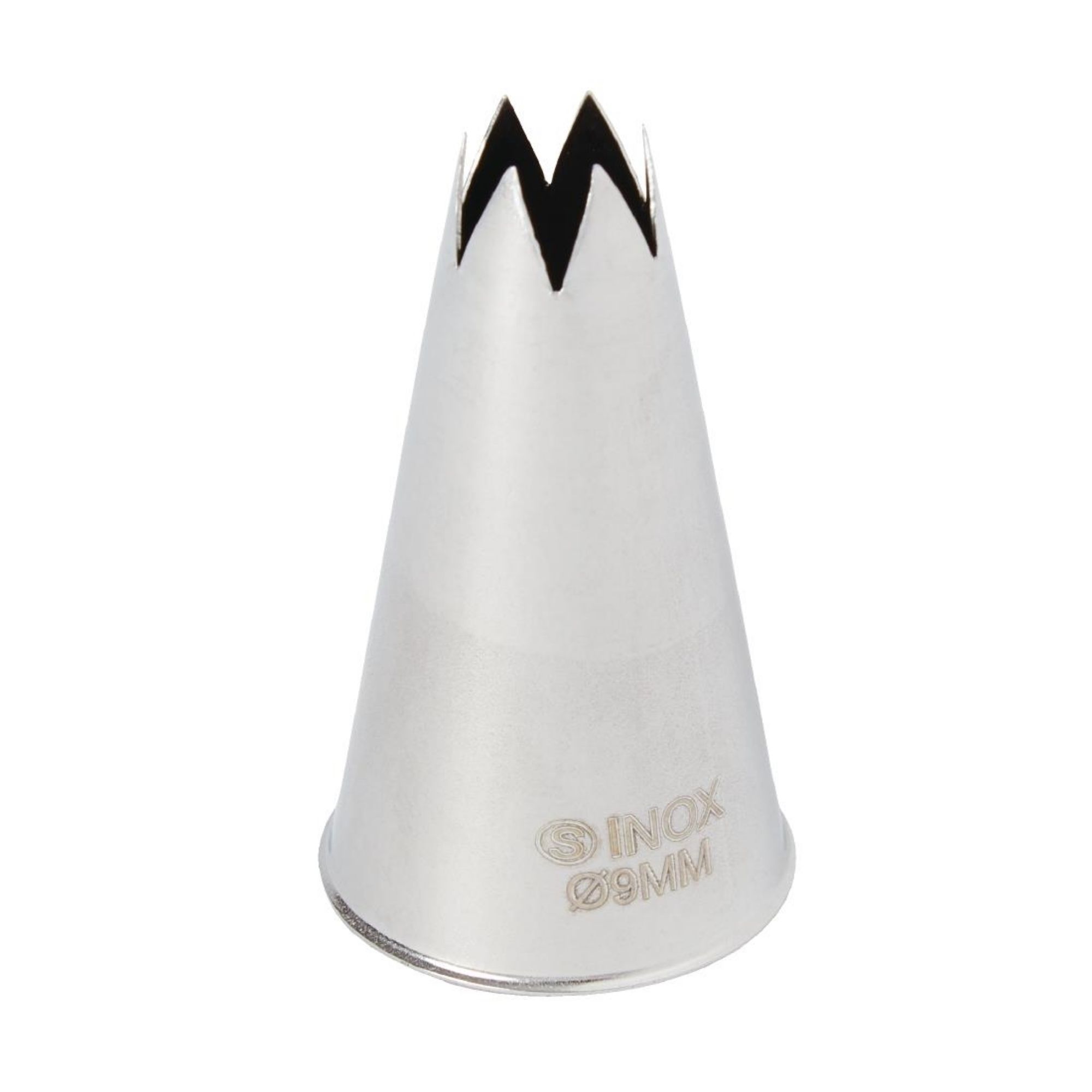 This 9mm stainless steel star tube is perfect for creating precise and accurate star shapes on cakes and pastries. The strong stainless steel construction makes it extremely durable and easy to clean, ideal for professional use. It can be used with all types of piping bags, making it a great addition to any baking arsenal.