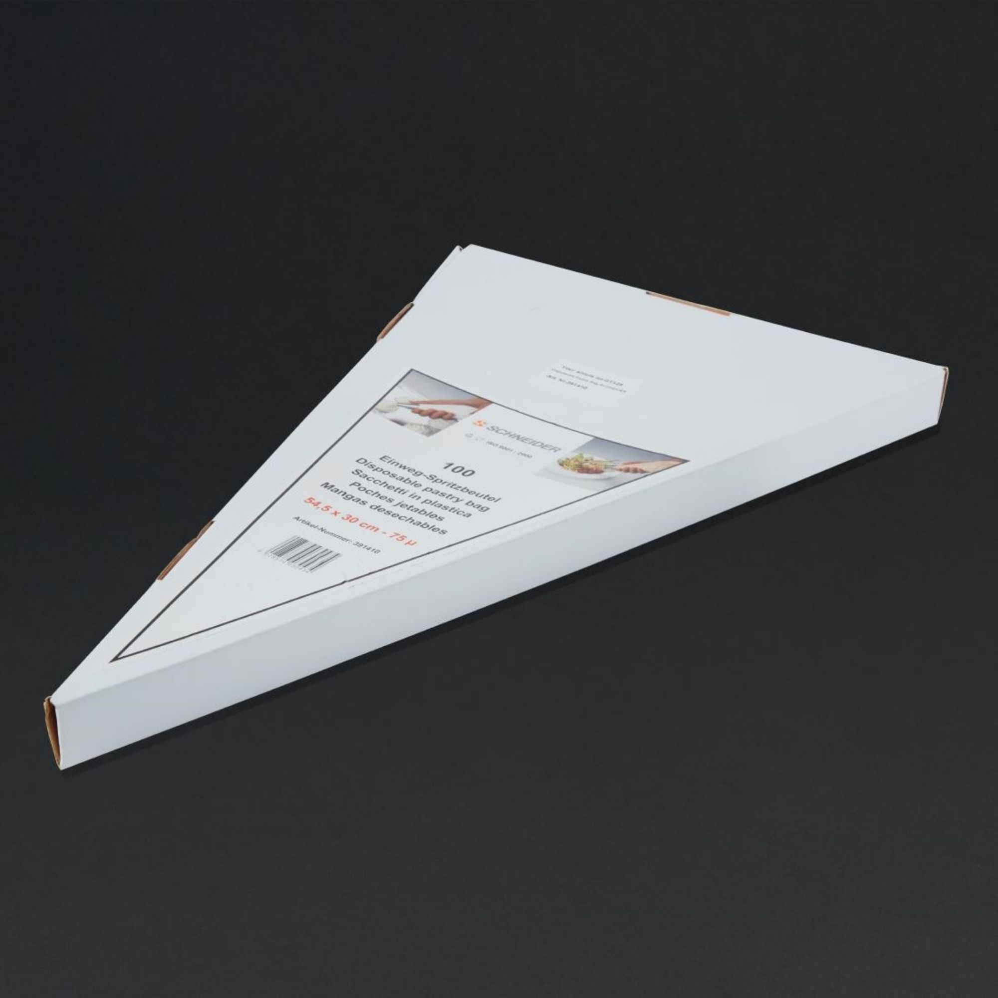 Effortlessly decorate cakes and pastries with these disposable piping bags from Schneider. Each bag is made from polyethylene and features multiple layers with a silky inner that makes it easier to pipe. The transparent design allows you to see how much is left, and they can be used with or without a tube. The 100 bags come in a handy box for easy dispensing.
