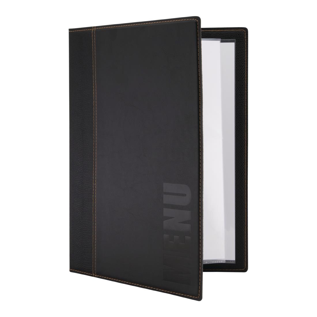Looking for a stylish and secure way to display your menu? This premium-quality menu cover from Securit is exactly what you need. Made from high-quality synthetic leather, the menu cover is not only resistant to wear and tear and easy to clean, but it also excels in style. This makes it a great addition to professional dining rooms, where it's sure to enhance your table settings for years to come.
