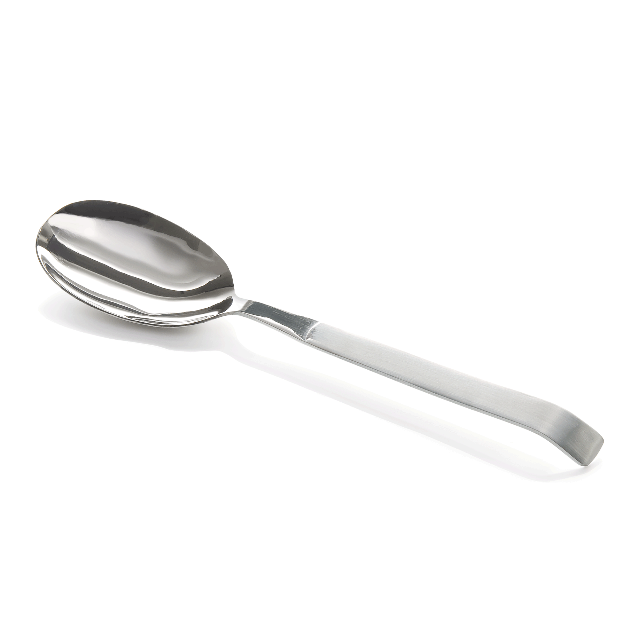 The product features handles with a satin finish, providing a sleek and modern look. The spoon bowl is crafted with a mirror finish, adding a touch of elegance and sophistication.