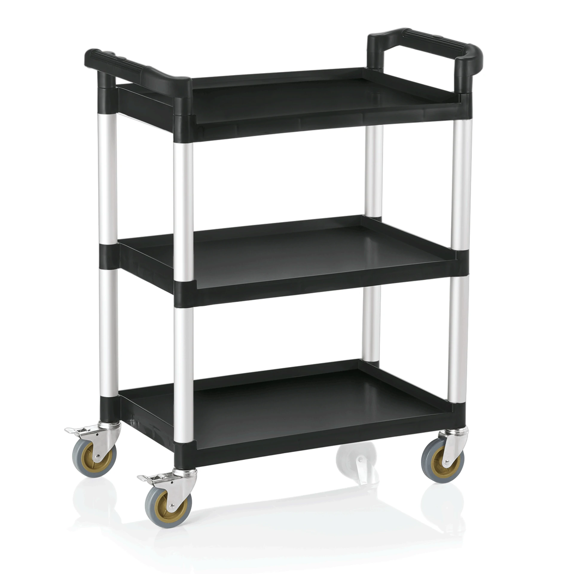 The product features a load capacity of 25 kg per shelf, providing robust support for various items. It is equipped with four swivel castors, two of which include brakes for enhanced stability and ease of movement. The installation process is simplified with a screwless design, ensuring quick and hassle-free assembly.