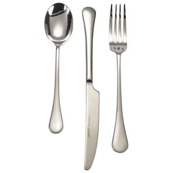 This set includes a table knife, a table fork, and a dessert spoon, each crafted from 18/0 stainless steel and brilliantly polished for an eye-catching shine. The stainless steel ensures that the cutlery is robust and long-lasting, providing excellent resistance against staining and pitting.