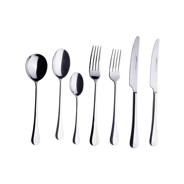 Included in this set are a table knife, table fork, dessert knife, dessert fork, dessert spoon, soup spoon, and a teaspoon. Each piece is designed to offer a comfortable grip and ease of use, making it an ideal choice for a variety of food businesses.