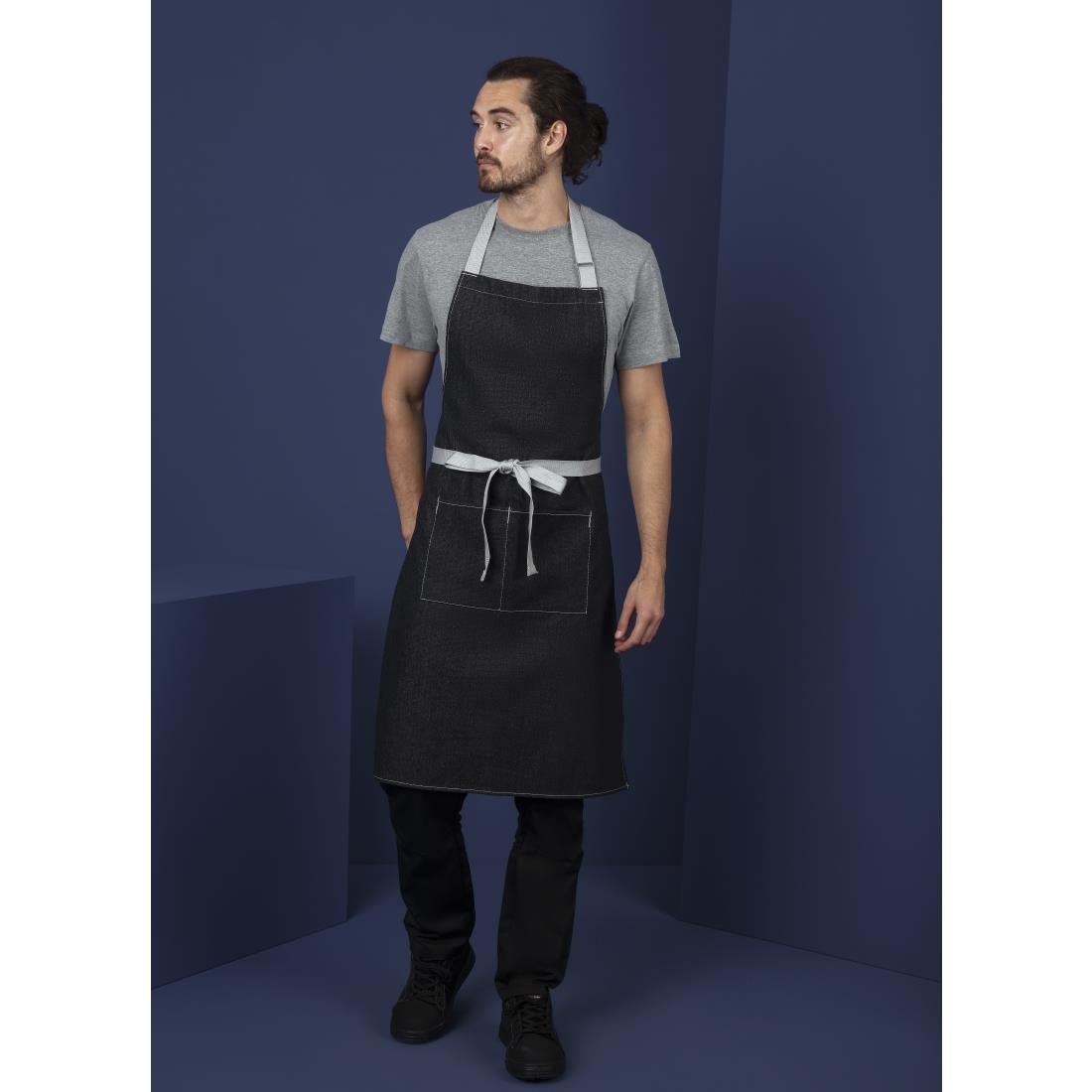 Balancing comfort and function with style and design, Southside introduces street-food inspired chefs clothing for both front and back of house. Galvanize your dress code with this polycotton black denim bib apron with contrast ties, featuring a large double front pocket.