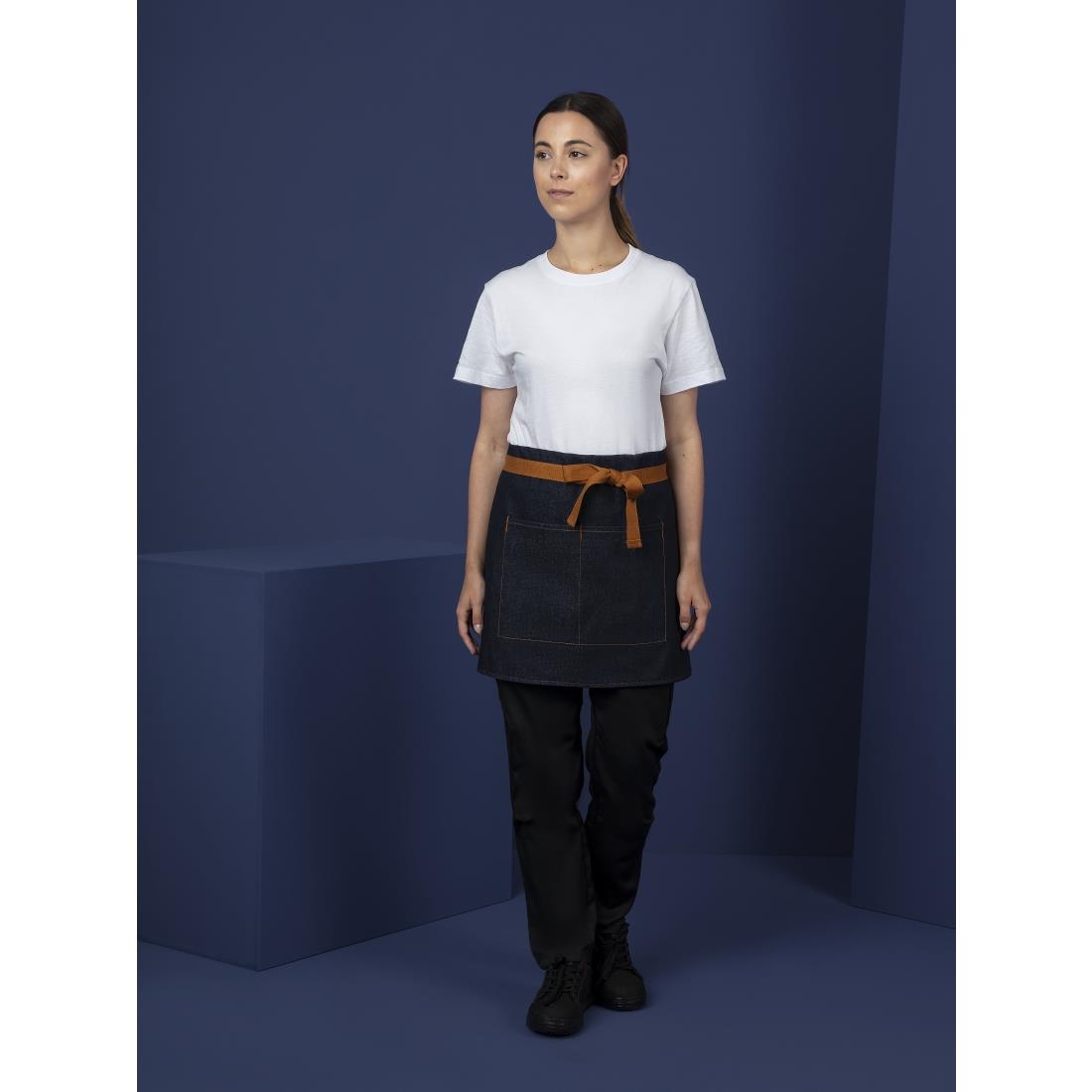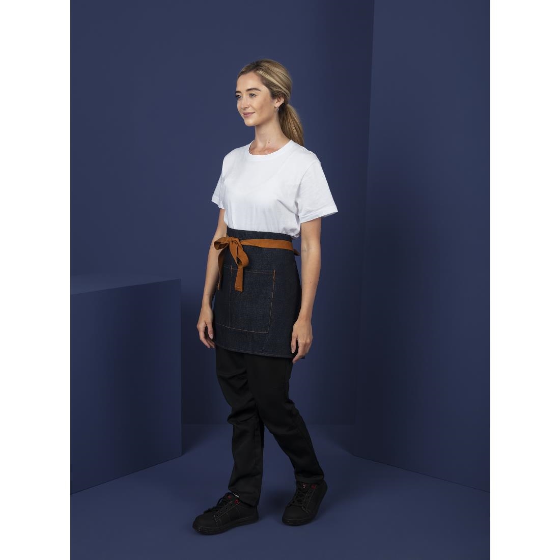 Durable and stylish high-quality polycotton aprons are designed for front-of-house use. These aprons are suitable for commercial laundering, ensuring they maintain their appearance and functionality even after frequent washes.