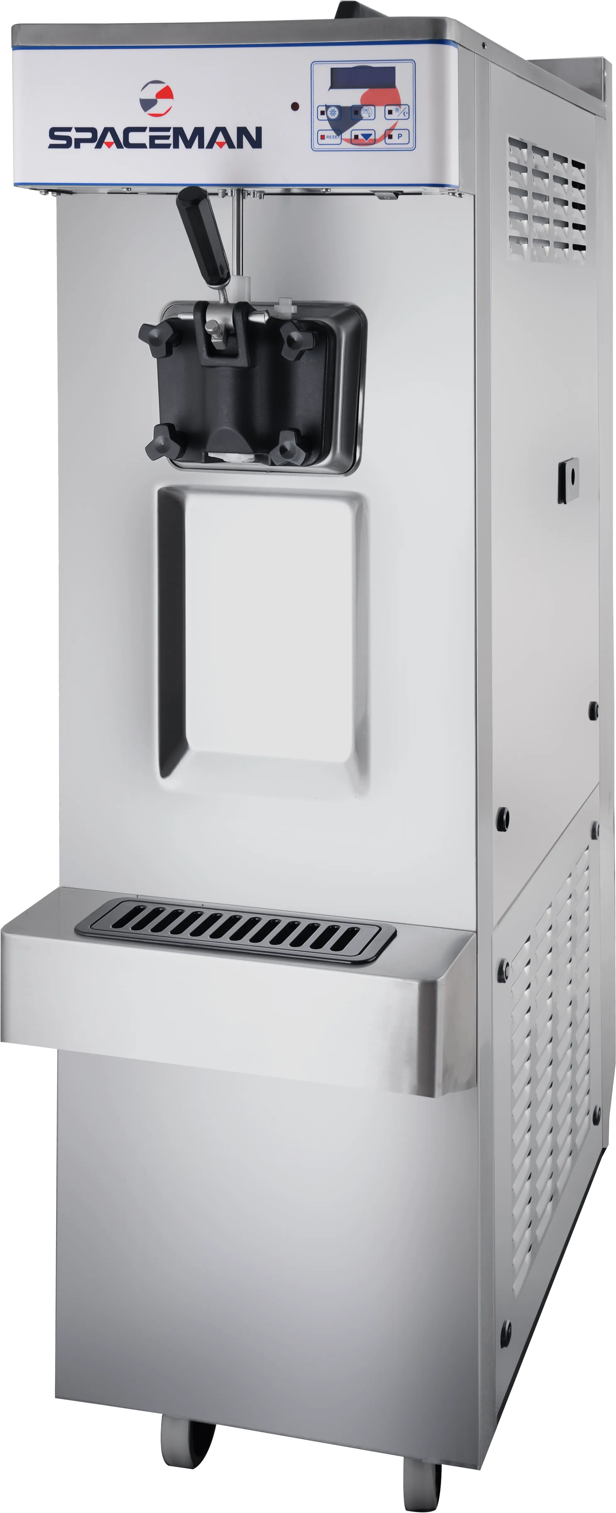 The Spaceman S68C is a high-quality, single-flavor soft serve ice cream machine designed to meet high demand with ease and efficiency. Ideal for serving ice cream, frozen yogurt, and sorbet, this freestanding unit boasts advanced features for optimal performance.