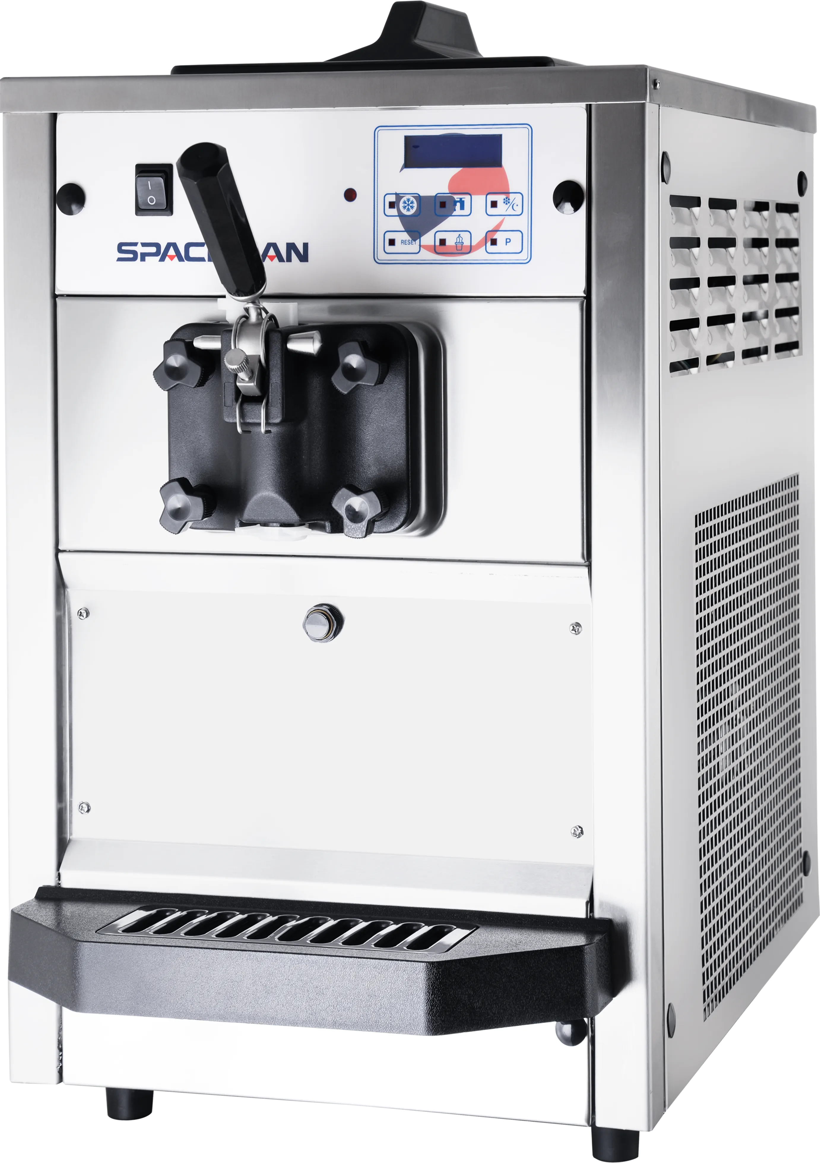 Introducing the Spaceman T10 Soft Serve Ice Cream Machine, a dependable solution designed to consistently produce perfect, creamy soft serve ice cream, frozen yogurt, and sorbet. This machine is a true powerhouse, featuring a robust compressor and intuitive controls for seamless operation. The Spaceman T10 is at the forefront of refrigeration technology, with a system that rapidly cools ingredients to ensure each cone served is perfectly chilled, ready to satisfy and delight your customers.