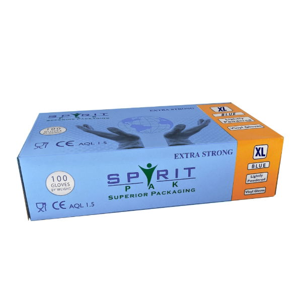 These Spirit LP blue vinyl gloves come in a pack of 10 bundles, with each bundle containing 100 gloves in extra-large size. They provide a comfortable fit and reliable protection for various applications, including food handling or general cleaning tasks. They ensure hygiene and safety in different work environments, such as commercial kitchens, healthcare facilities, or janitorial services. 927950,BWG, PD8149