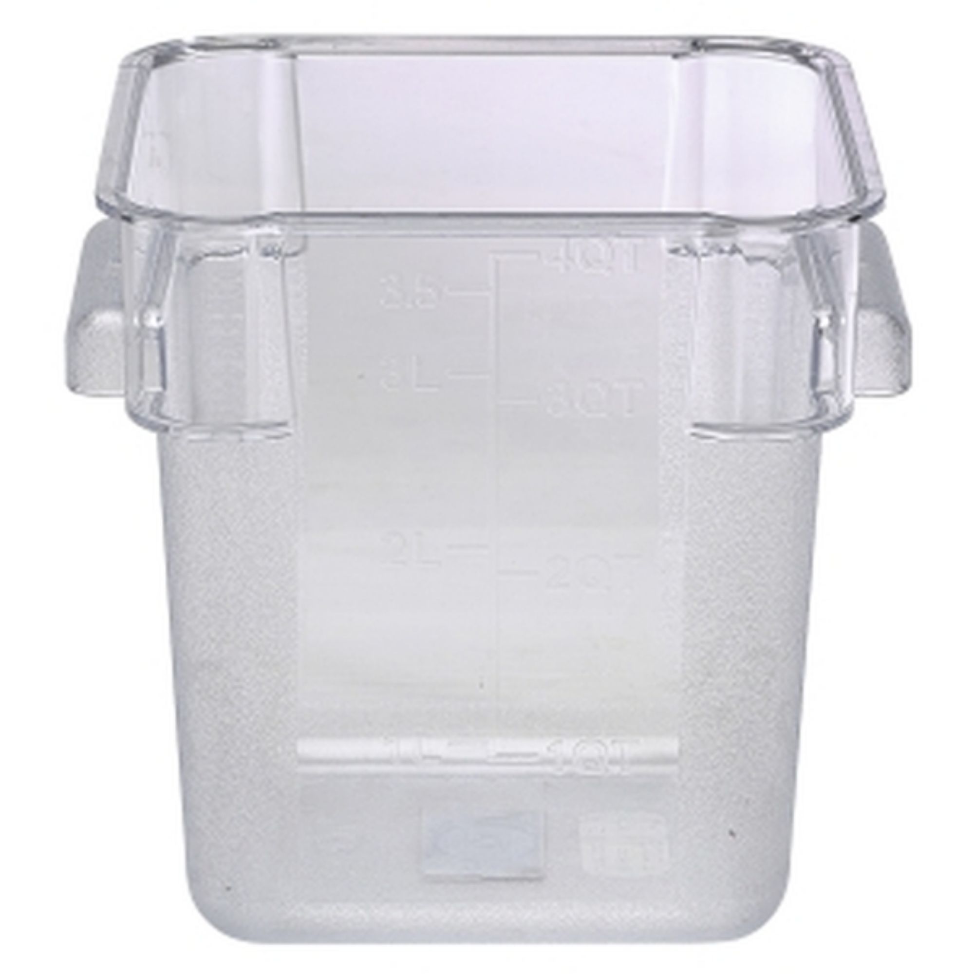 A unique feature of this container is the capacity measurements etched directly onto the side, making it easier for you to accurately control portion sizes, reduce waste, and streamline your kitchen operations. Additionally, the container has wipe easy-grip handles, allowing for safer and more comfortable handling during transportation or when removing it from shelves. Conveniently, this square container also has stacking lugs to prevent jamming when stacked on top of each other, making storage even more efficient and space-saving in your busy kitchen.