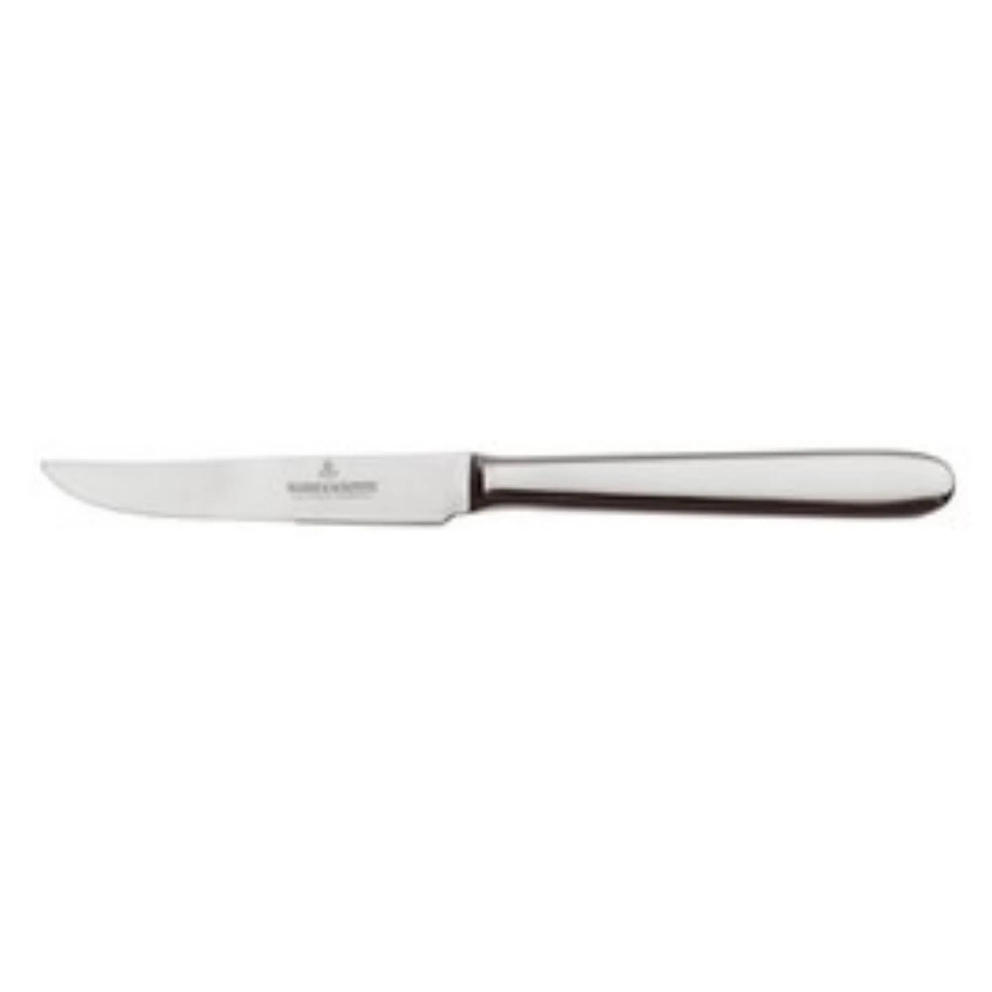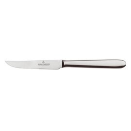 The steak knife is crafted from high-quality chrome steel, ensuring durability and precision. This knife is designed to effortlessly cut through steaks and other meats, providing a clean and smooth slicing experience. Its ergonomic handle offers a comfortable grip, making it an essential tool for any kitchen. The sleek design and robust construction make this steak knife a perfect addition to both professional and home culinary settings.