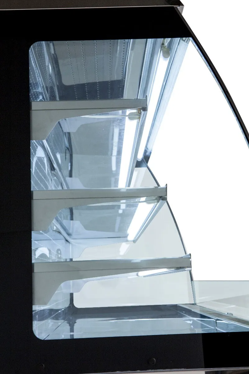 The Sterling Pro EVO-Self-BLK is a self-service display counter ideal for displaying pastries, pre-packed food, sandwiches, and drinks. It features three stainless steel shelves and a stainless steel deck. This self-service display counter comes with electronic controls, easy access for servicing and maintenance, and low energy consumption. The modern, elegant design will catch the eye in any café, convenience store, or restaurant. The efficient refrigeration system is enhanced by the superb airflow around each of the product shelves.
