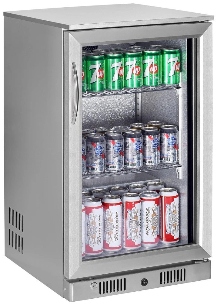 The Sterling Pro SP1HC-STS Stainless Steel Single Door Bottle Cooler, with a capacity of 138 litres, is ideal for busy commercial environments such as pubs, restaurants, and cafés. This range is manufactured with an aluminium interior and features an environmentally friendly R600a refrigerant. It also includes LED lighting, hinged doors, adjustable shelves, fitted locks, and a timed defrost function.