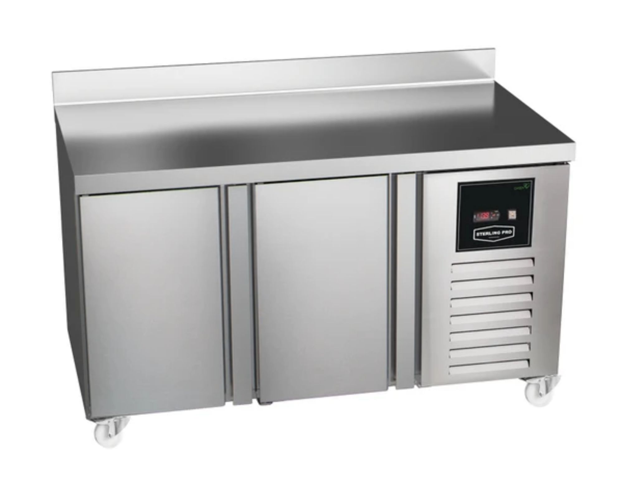 The Sterling Pro Green SPI-7-135-20 2 Door Refrigerated Counter with 100mm Splashback is part of their Green hydrocarbon range, meaning it is more environmentally friendly to run. Being 100% European build, you can be sure the SPI-7 range builds on the Sterling Pro's reputation for quality, performance, and value for money. Featuring an intelligent and heavy-duty air-circulation system and the ability to cope with high ambient temperatures, the Sterling Pro Green line helps to reduce the financial and environmental impact. It shows a 65% reduction in energy consumption against the standard Sterling Pro range while still achieving the very best performance.