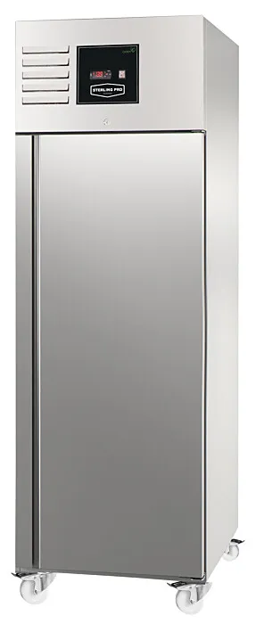 The Sterling Pro Green SPI700R Single Door Gastronorm Fridge Cabinet, featuring a right-hand hinge, is a 700-litre unit equipped with a heavy-duty forced air system. This design allows it to perform efficiently in busy environments. Constructed from stainless steel, the fridge emphasizes reliability and daily usability. It includes features such as rounded interior edges to facilitate easier cleaning. Additionally, the ergonomically built-in handles ensure easy opening and closing, while also minimizing the accumulation of dirt and dust.