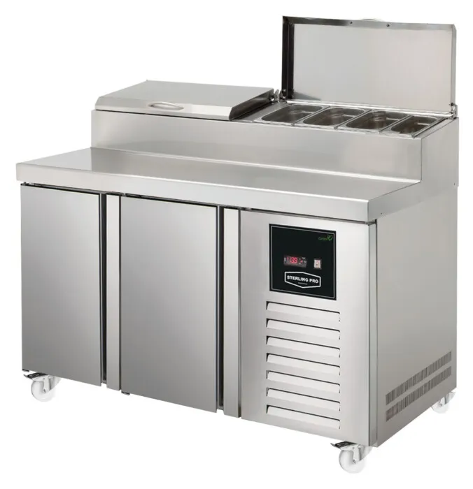 The Sterling Pro SPIZ-135 2 Door Refrigerated Preparation Counter is manufactured in high-quality stainless steel for intensive professional applications. It features a very robust design and perfect finishing. The doors are equipped with ergonomic, full-length, robust, perfectly integrated handles that ensure practical opening, avoiding dust and dirt collection.