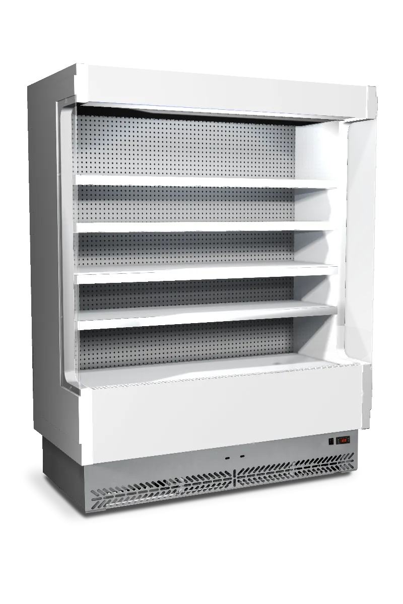 The Sterling Pro VOLCANO Multideck Display Chiller offers all the professional features you would expect from a high-quality multideck. It includes four steel shelves and removable deck panels, all finished in white, providing a sleek and clean appearance. The chiller is equipped with neon strip lighting, ticket rails, and a night-blind, all supplied as standard features. Its ventilated cooling system, combined with automatic timed defrosting, maintains a consistent temperature range of +3 to +5 °C, ensuring optimal performance and product preservation.