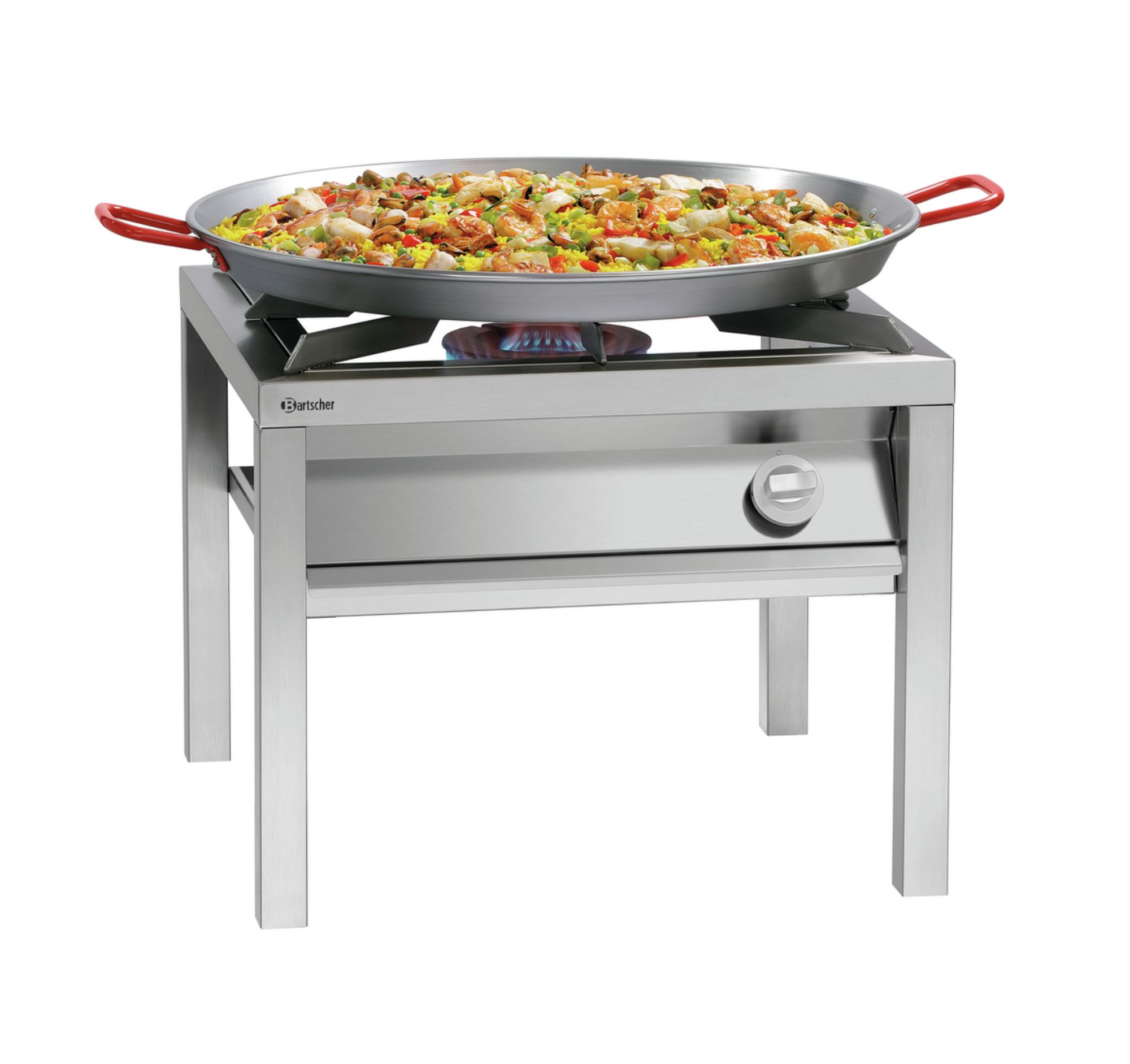 Large and heavy pots, paella pans, and cast iron frying pans are no challenge for this gas stool cooker. The particularly large cooking area, high load capacity, and 20 kW power enable the preparation of larger food quantities outdoors without any problems.