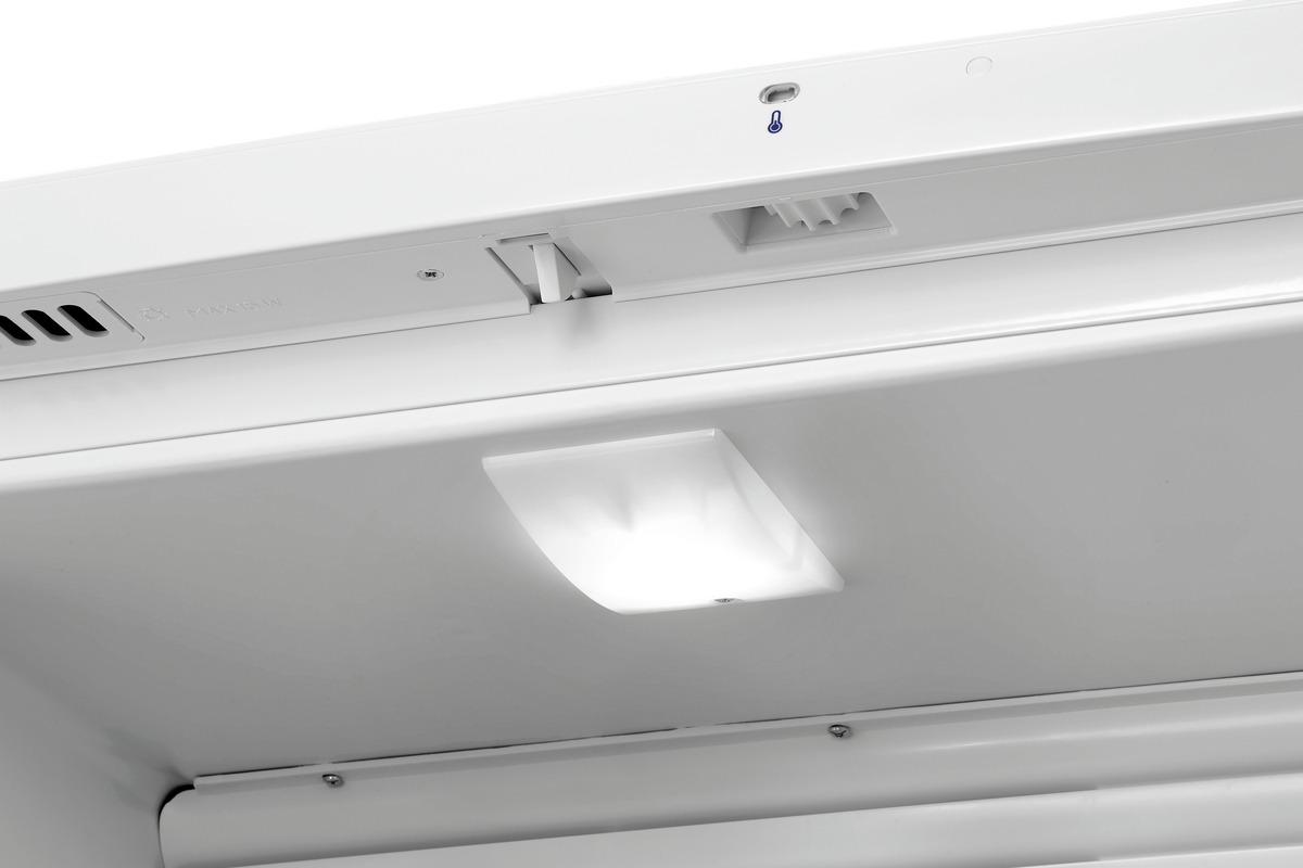 With its minimalist design, this convection refrigerator fits perfectly into any kitchen or storage room. Food, whether packaged or in containers, can be kept cool on five height-adjustable intermediate shelves.
