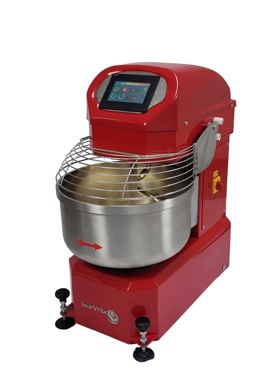 - Equipped with a double inverter allowing separate speed adjustments for the spiral and bowl, ranging from 70 to 300 rpm for the spiral and from 8 to 30 rpm for the bowl.