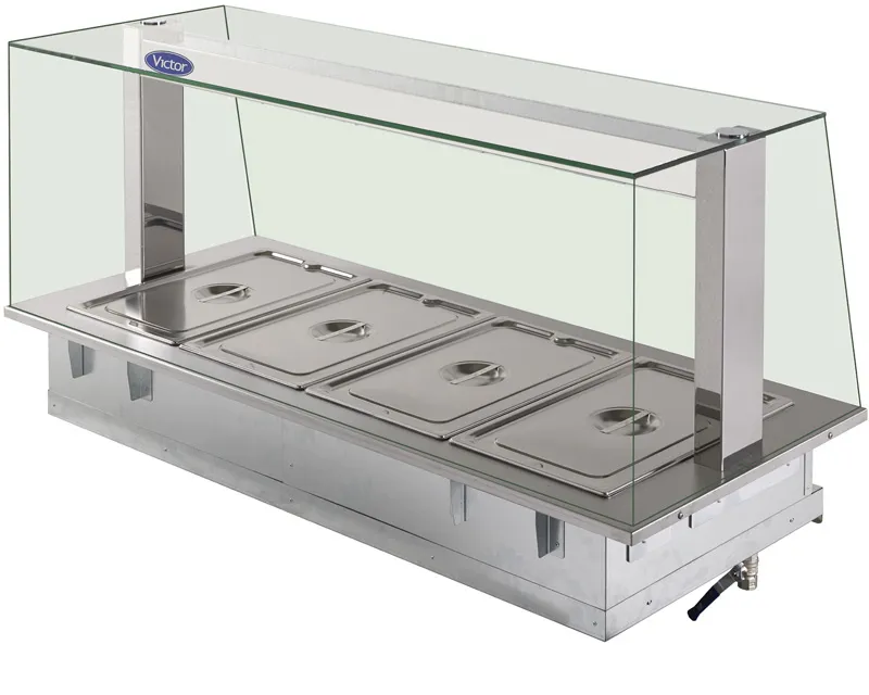 • Check iconDisplays are designed to be integrated into a counter surface to form a food servery.