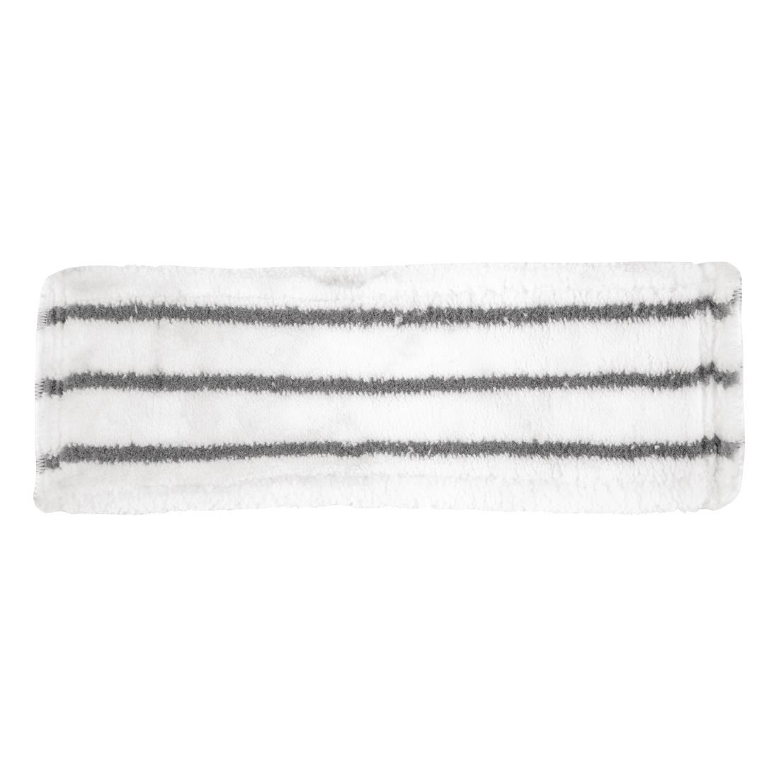 The blue SYR microfiber flat mop head is designed to efficiently wipe up any liquids, dirt, or spills.