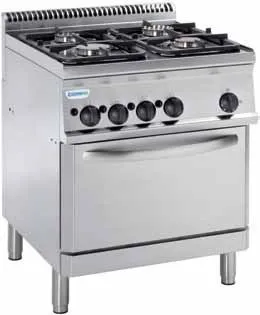 The Tecnoinox PF70V7 is a medium-duty, dual-fuel range. It is equipped with an electric convection oven that provides even heat distribution, making it ideal for baking and other cooking tasks. This oven is particularly suitable for use in nursing homes, schools, and similar institutions.