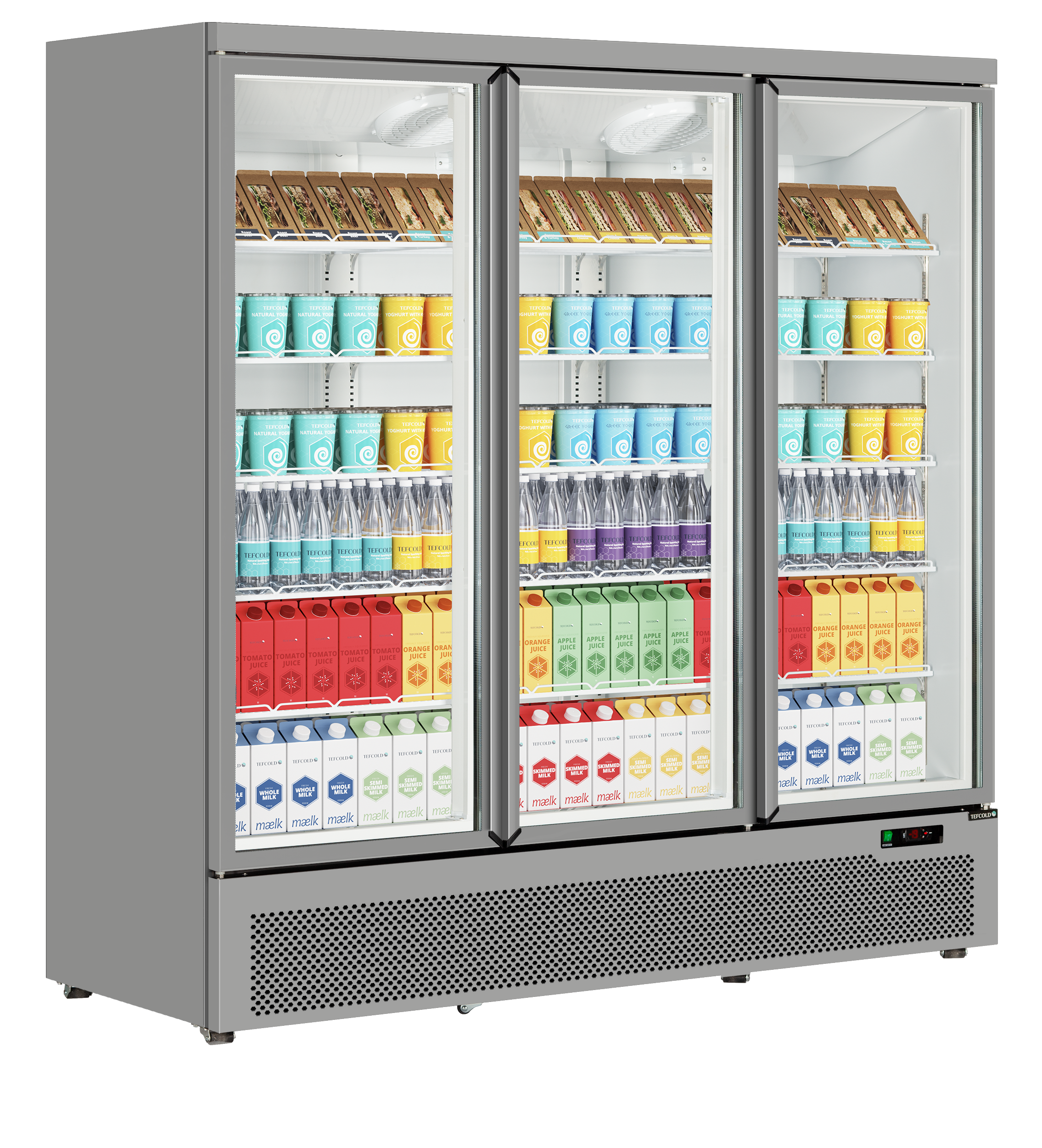 The Atom Maxi range of glass door chillers is available in two or three-door options. Featuring edge-to-edge, frameless, self-closing glass doors and excellent storage capacity, it is ideal for all types of chilled food and drink displays. The canopy-less design makes it a favorite choice for shopfitters who use it in convenience stores, delis, and butchers, where a chilled food and drink selection enables extra choice. A white interior with vertical LED lighting helps present the produce to customers in the best light. The Atom Maxi provides a competitively priced solution to introduce chilled produce to your customers. There is also a matching freezer option available.