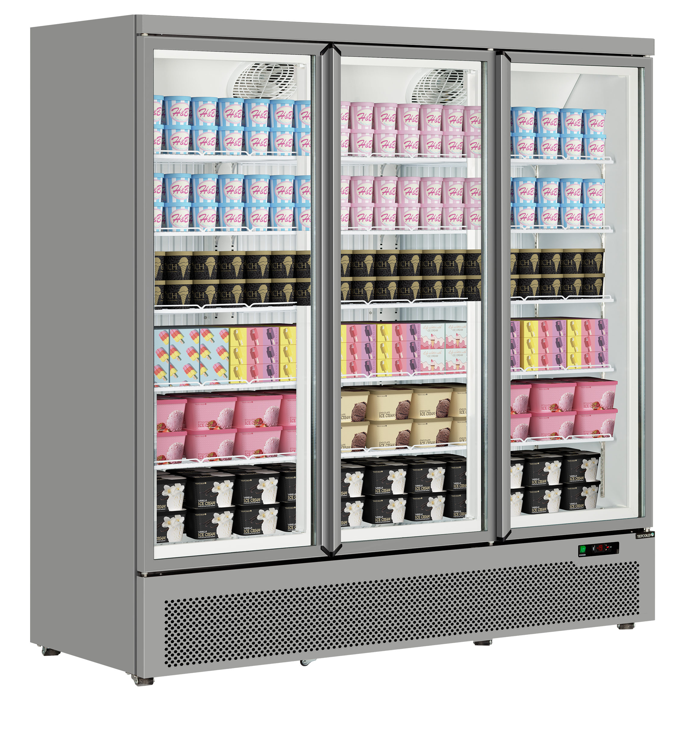 The Atom Maxi range of glass door freezers is available in two or three door options. Featuring edge-to-edge, frameless, self-closing glass doors and excellent storage capacity, it is ideal for all types of frozen food display. The canopy-less design makes it a favorite choice for shopfitters in convenience stores, delis, and butchers, where a frozen selection gives customers extra choice. A fully automatic refrigeration system ensures the unit will not ice up under normal conditions, while vertical LED lighting on the interior helps present the produce to customers in the best light. The Atom Maxi provides a competitively priced solution to introduce frozen food to your customers. A matching chiller option is available.