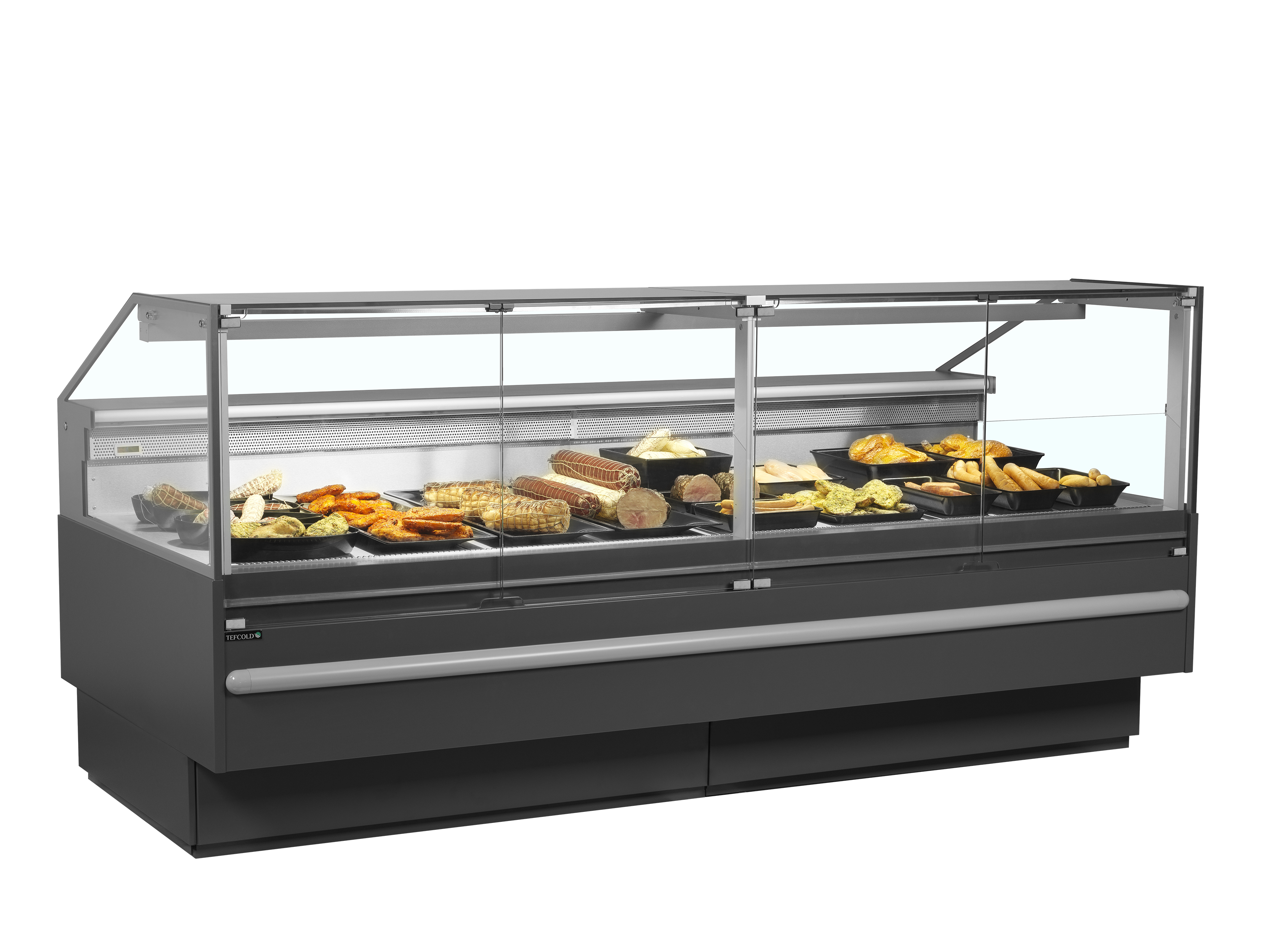 TEFCOLD's SOCB serve-over counters are perfect for delis, elevating food display with an 825mm stainless steel deck, LED lighting, and user-friendly front-opening glass for easy cleaning. These counters efficiently accommodate E2 boxes in the understorage and can be customized with a range of accessories. Additionally, these units seamlessly support cash register connectivity via 220V sockets. For further information, please get in touch with us.