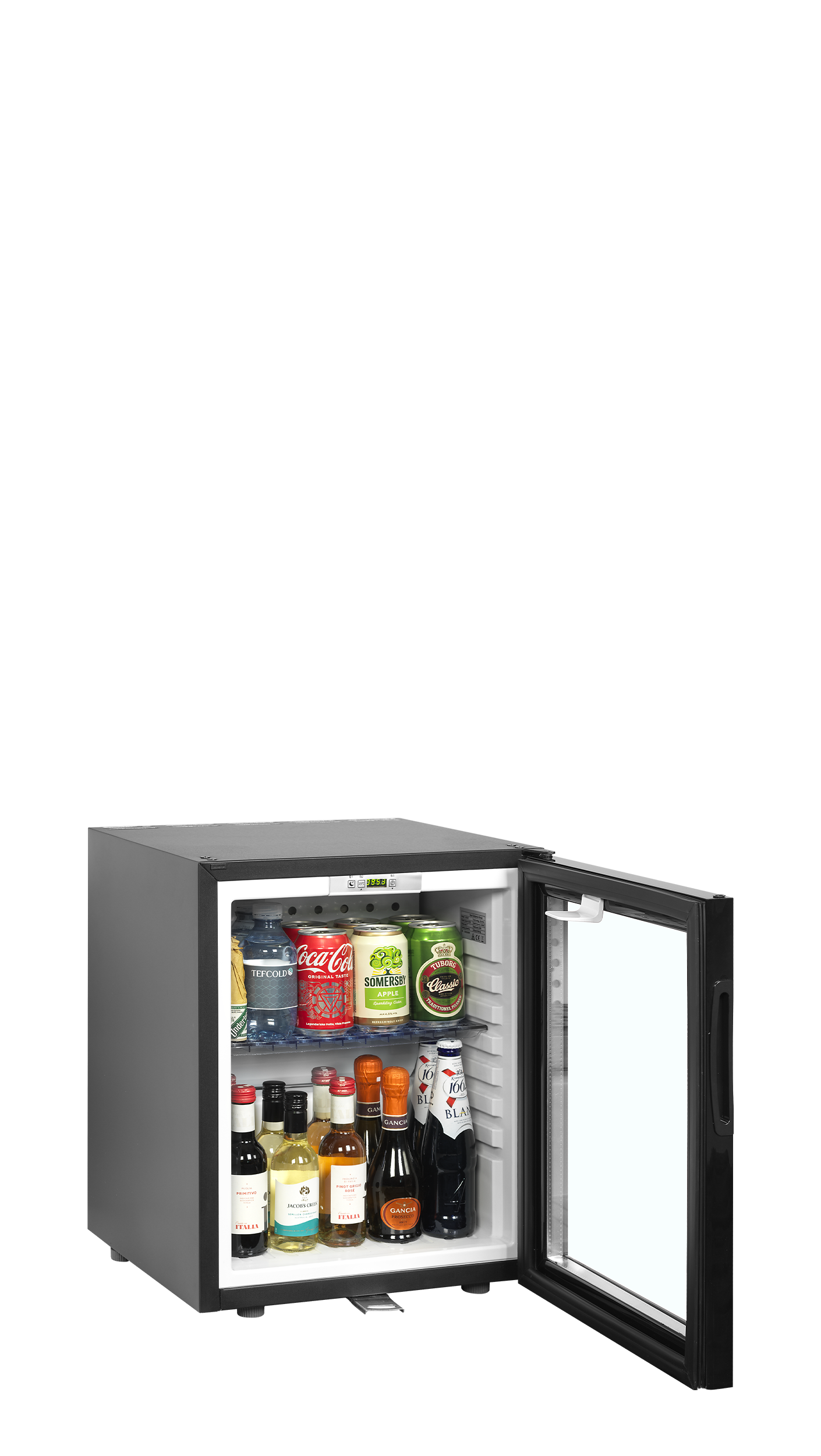 The innovative TM-GC range from TEFCOLD is designed as a modern alternative to traditional absorption minibars. Featuring a compressor refrigeration system, these minibars offer faster cooling and reduced consumption. With quiet operation at 38dB, smart programming for unoccupied periods, and convenient one-press functions, they are ideal for hotel rooms and boardrooms. Coupled with an elegant glass door, the design ensures excellent product presentation, enticing guests with a visually appealing display of cold beverages and snacks.