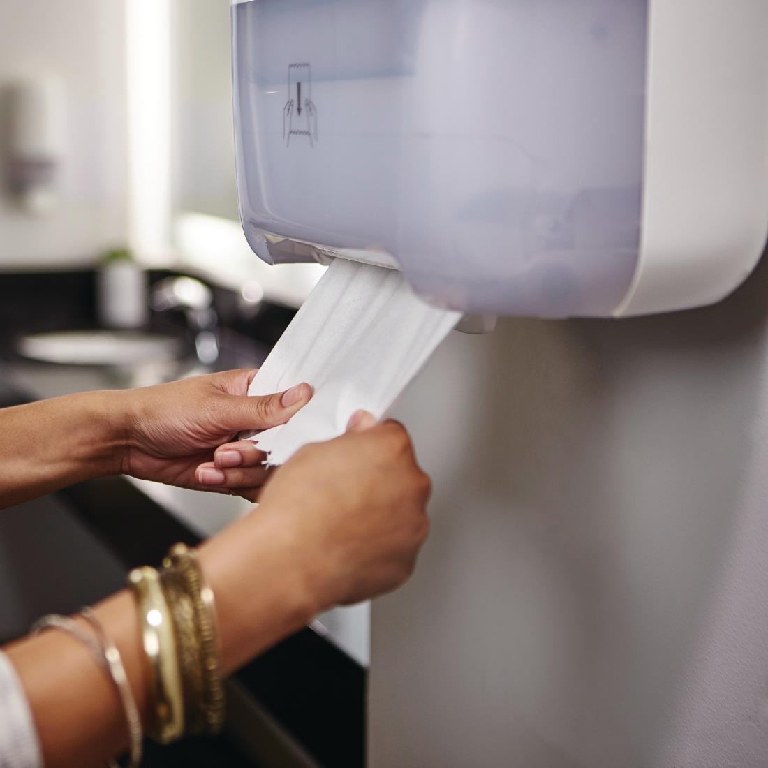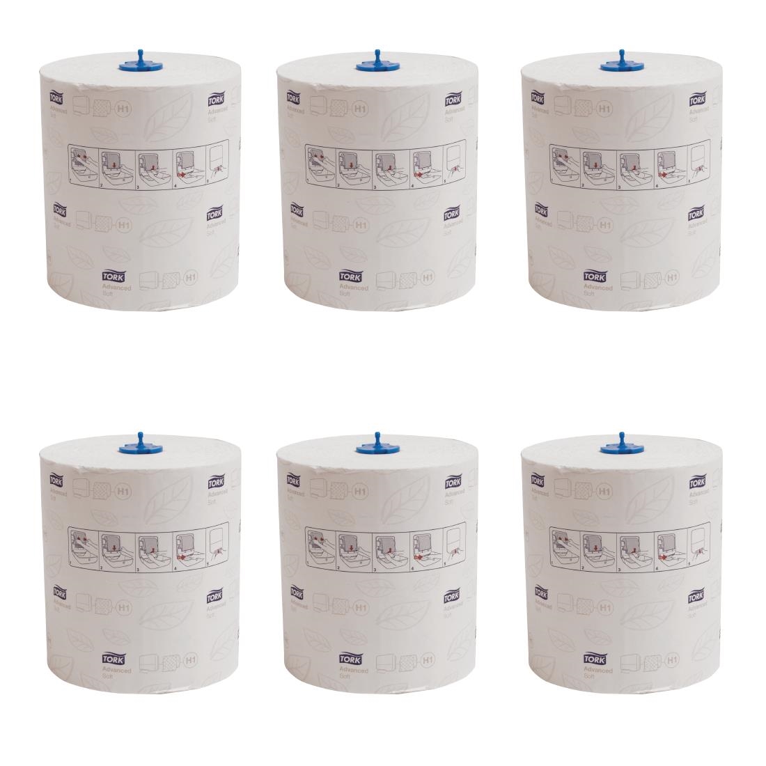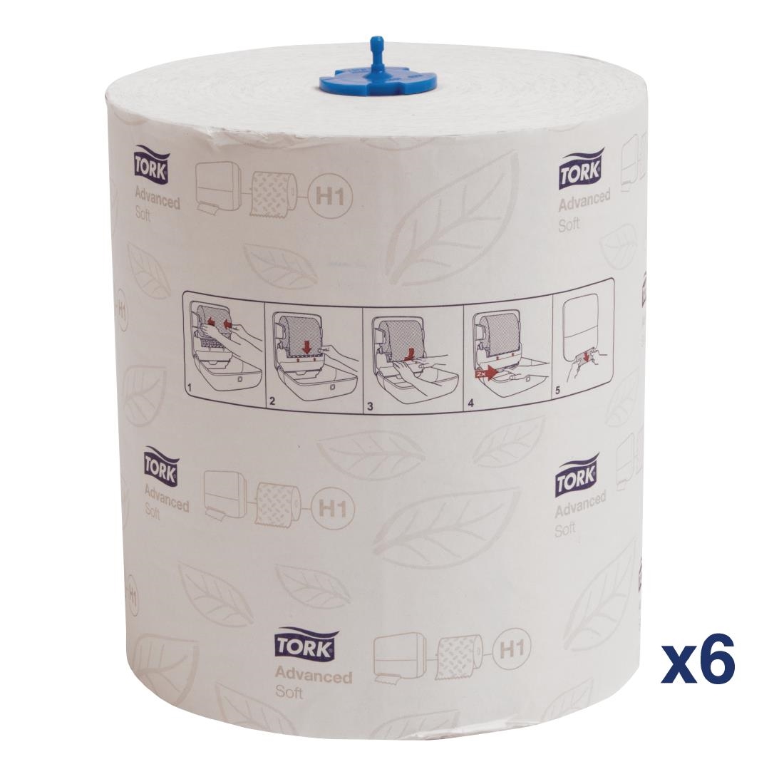 A pack of six Tork Advanced hand towel rolls, when used with the matching dispensers, will reduce paper consumption and enable easy maintenance in your facilities.