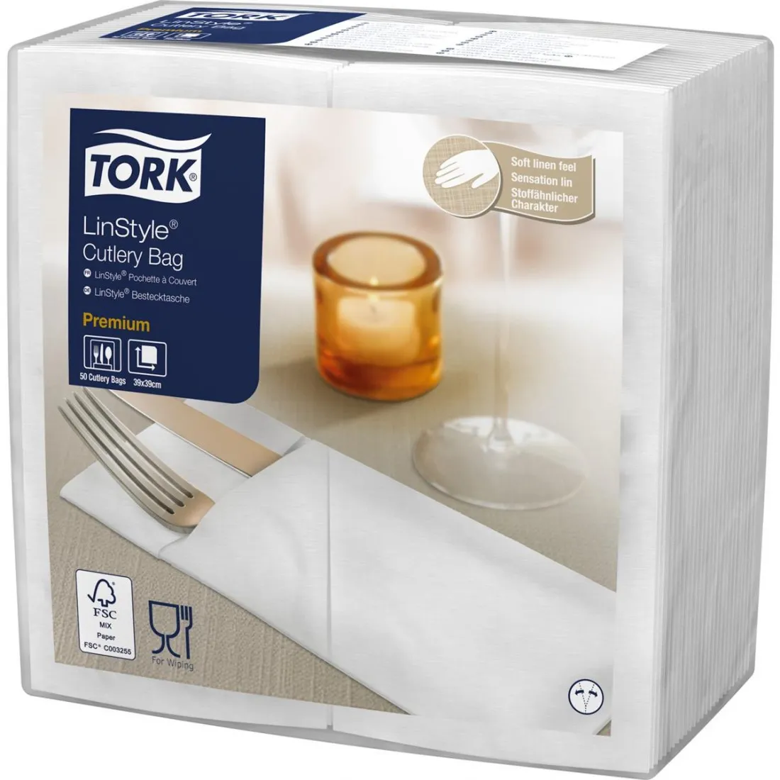 Tork LinStyle Cutlery Bag Napkin: Impress guests with our elegant cutlery bag napkin. These restaurant napkins are softer and bulkier than standard paper ones to enhance diners' comfort. Plus, they feature superior absorbency and durability, so staff and guests can swiftly manage spills. Ideal for use in busy, full-service restaurants, they come pre-folded as a cutlery bag to save time and effort when setting tables. Hygiene is also improved, as cutlery is protected. Choose from a selection of modern and classic colours to suit your venue.