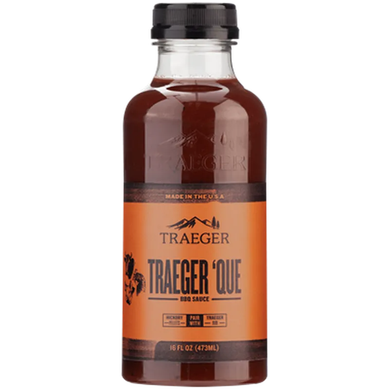 Our signature Traeger 'Que BBQ Sauce features notes of brown sugar, smoky hickory, and tangy vinegar for a classic flavor that’s a natural partner of ribs and pulled pork, but is also good on just about anything.