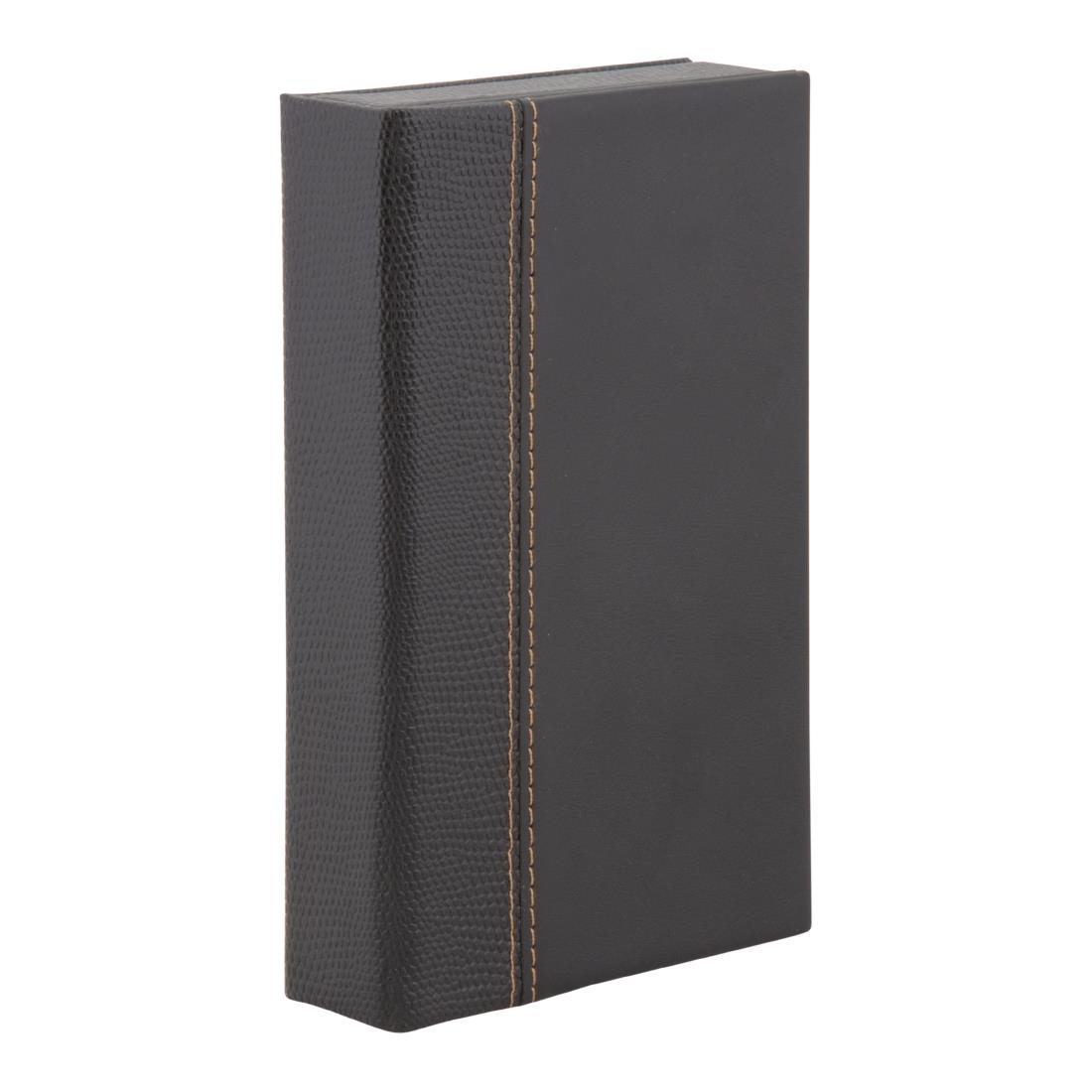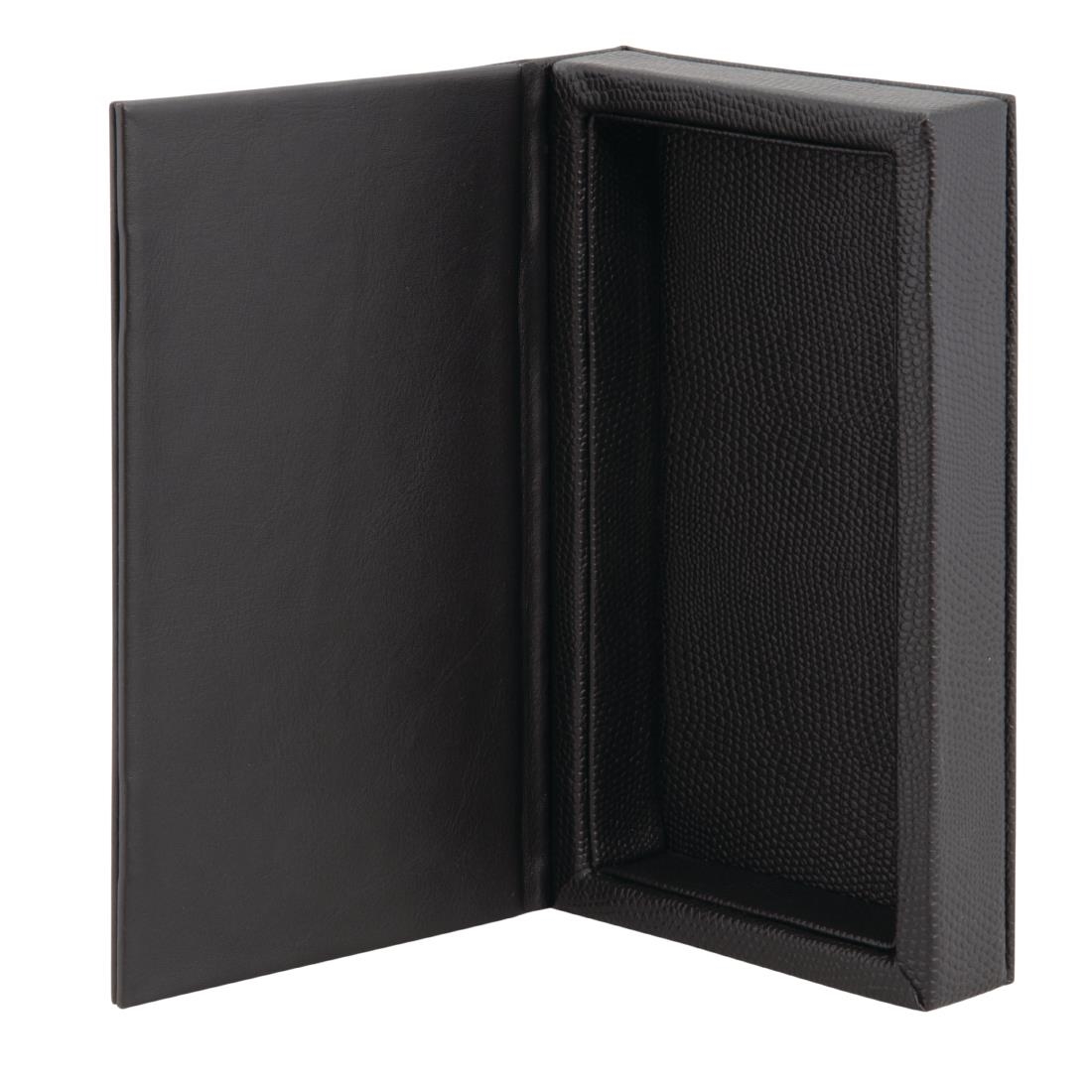 Oversized bill presenter in easy to clean leather effect material and stitched detailing. Holds the bill, notes, coins or credit card, pen and after dinner mints if desired.