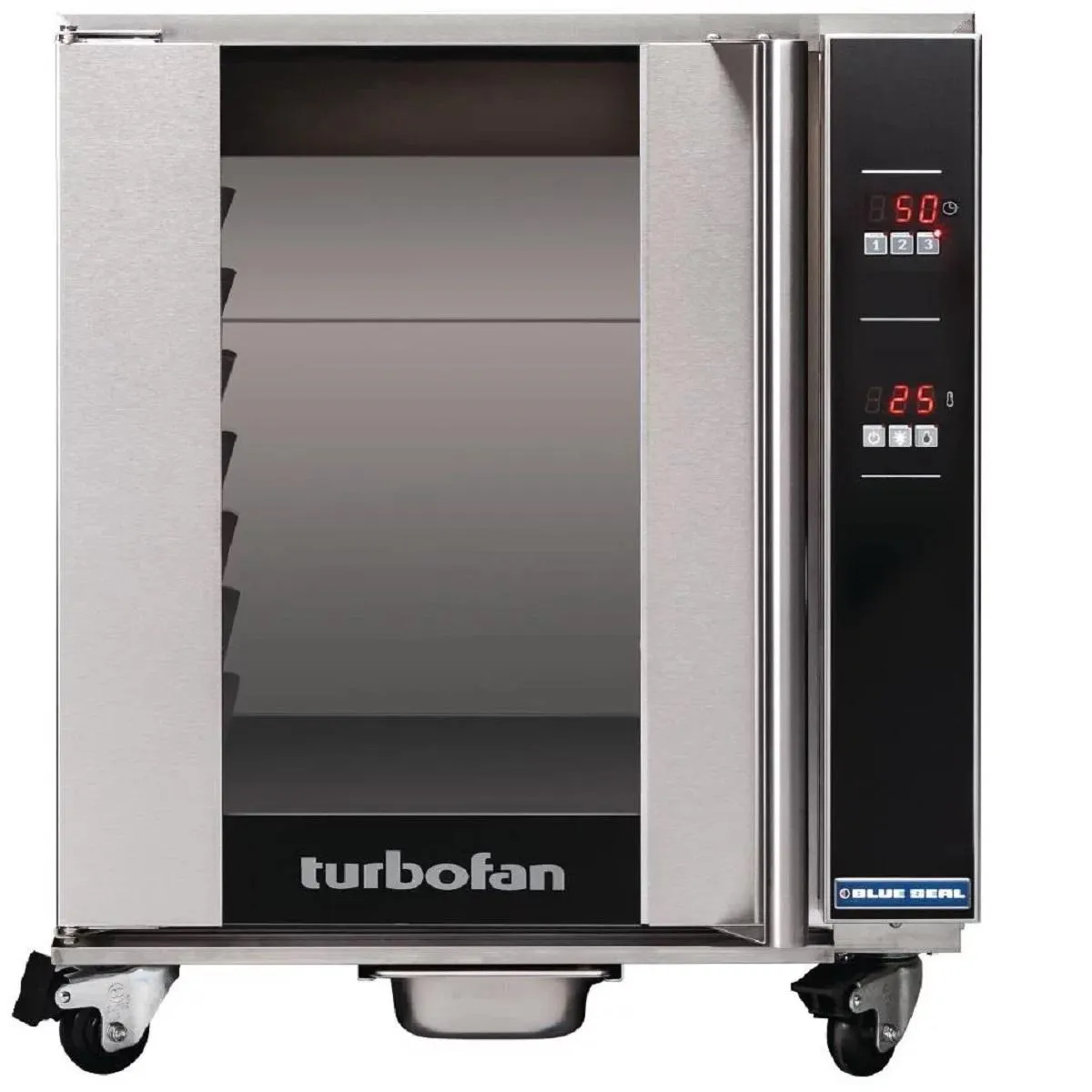 The Blue Seal Turbofan H8D-FS-UC Hot Holding Cabinet is a streamlined and compact unit designed to keep up to eight trays of food warm and ready to serve. It is simple to operate and features a low-velocity fan system that evenly distributes heat throughout the cabinet, ensuring that food is kept warm without being cooked. The cabinet is equipped with three independent hold timers, allowing you to keep multiple loads inside on the large 460x660mm bakery trays.