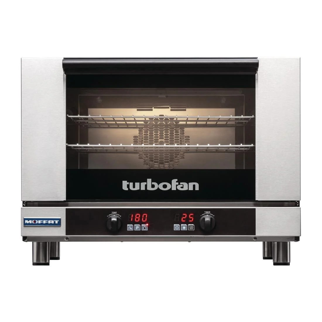 The Turbofan E27D3 Full Size Digital Electric Convection Oven is a dependable performer in the modern professional kitchen, making it a fantastic choice for caterers who require accuracy and reliability. This convection oven can accommodate up to three full-size sheet pans across three shelves, providing ample space for smaller bakeries or front-of-house cooking in sandwich shops and restaurants. With its digital controls and steam injection mode, you can be certain of achieving the desired results with this high-quality oven.